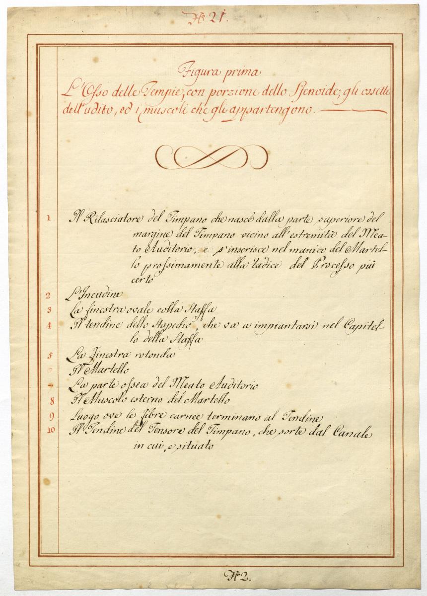 Der Text ist die ergänzende Beschreibung in italienischer Sprache zum anatomischen Wachsmodell des Ohres.