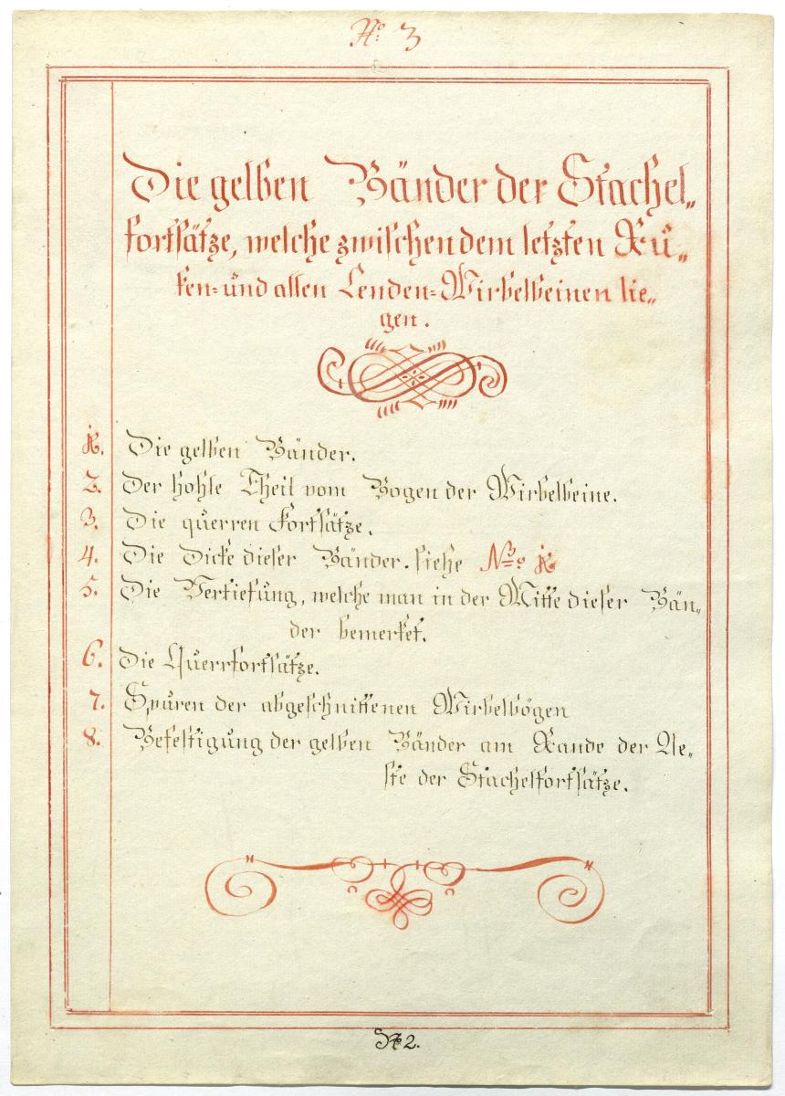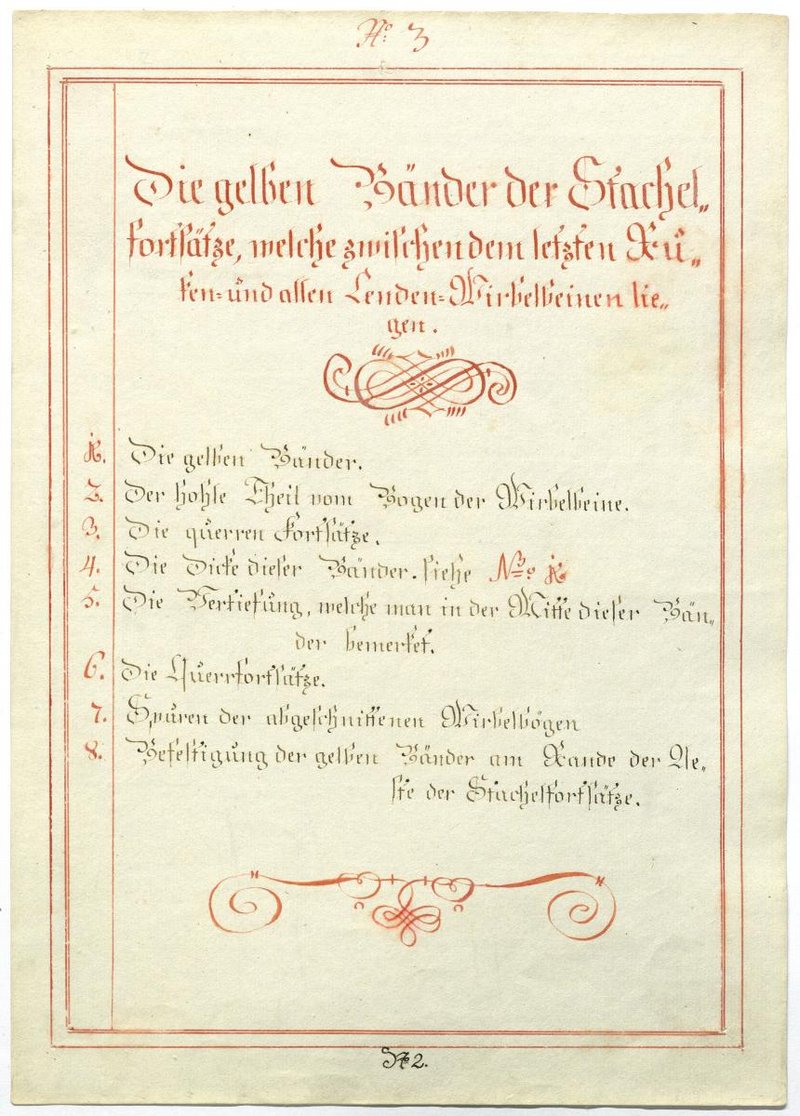 Der Text ist die ergänzende Beschreibung in deutscher Sprache zum anatomischen Wachsmodell der Knochen und Bänder im Lendenwirbel- und Brustwirbel-Bereich.