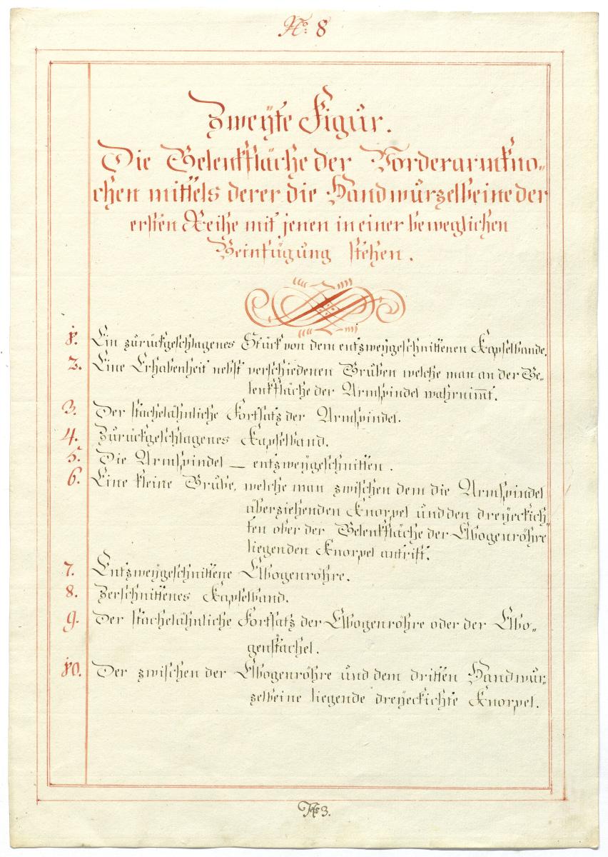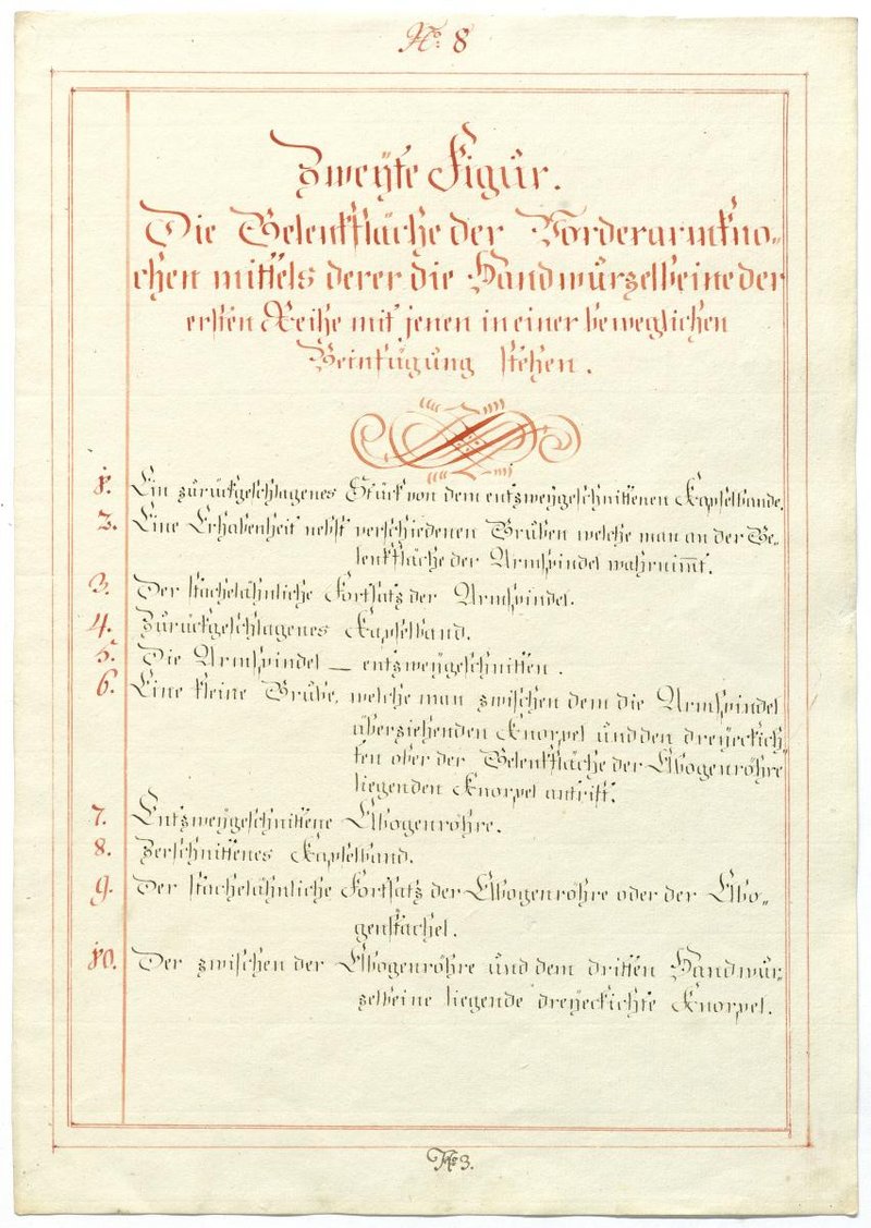 Der Text ist die ergänzende Beschreibung in deutscher Sprache zum anatomischen Wachsmodell des Unterarms, Ellenbogens und Handgelenks.
