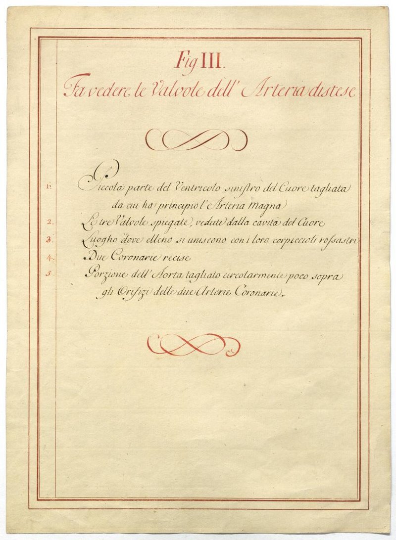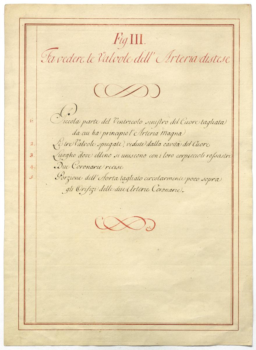 Der Text ist die ergänzende Beschreibung in italienischer Sprache zum anatomischen Wachsmodell des Herzens.