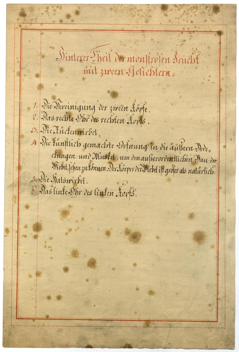 Der Text ist die ergänzende Beschreibung in deutscher Sprache zum anatomischen Wachsmodell einer Fehlbildung bei Neugeborenen.