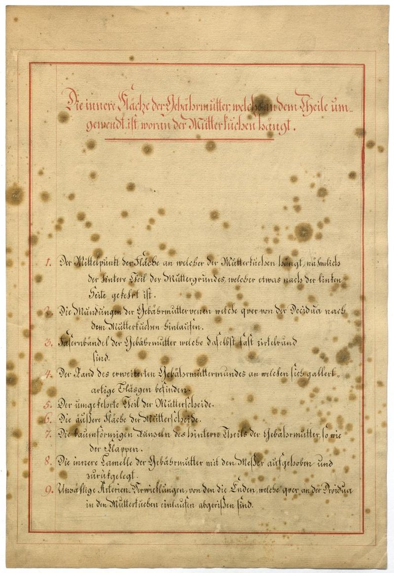 Der Text ist die ergänzende Beschreibung in deutscher Sprache zum anatomischen Wachsmodell einer Gebärmutter.