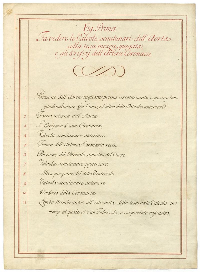 Der Text ist die ergänzende Beschreibung in italienischer Sprache zum anatomischen Wachsmodell des Herzens.