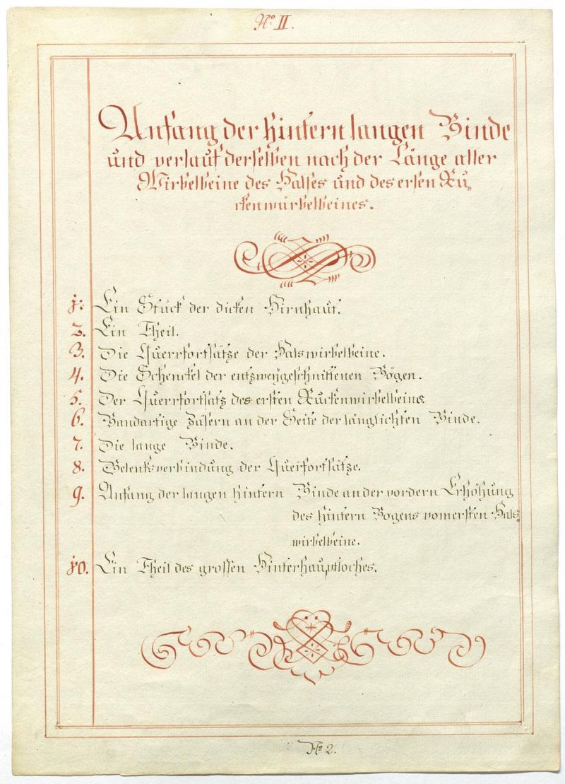 Der Text ist die ergänzende Beschreibung in deutscher Sprache zum anatomischen Wachsmodell der Knochen und Bänder des Halsbereiches. Die Italienische Beschreibung fehlt.