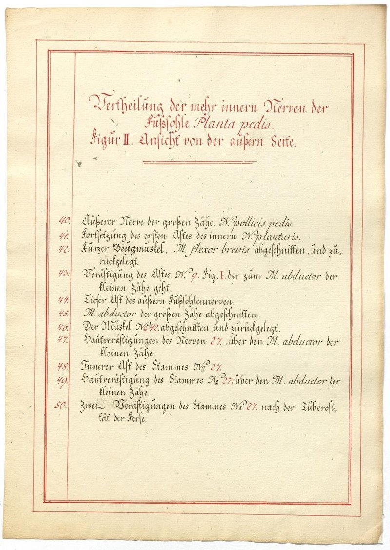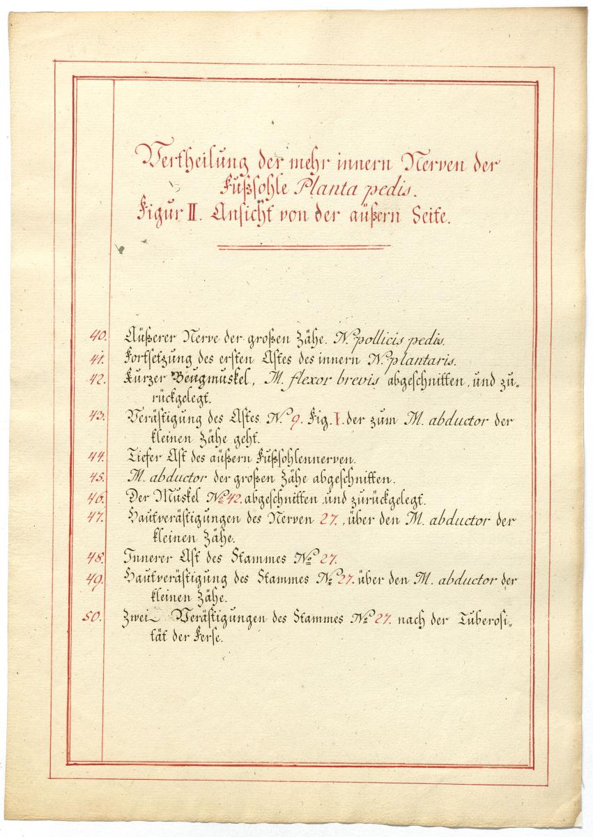 Der Text ist die ergänzende Beschreibung in deutscher Sprache zum anatomischen Wachsmodell der Nerven der Fußsohle.
