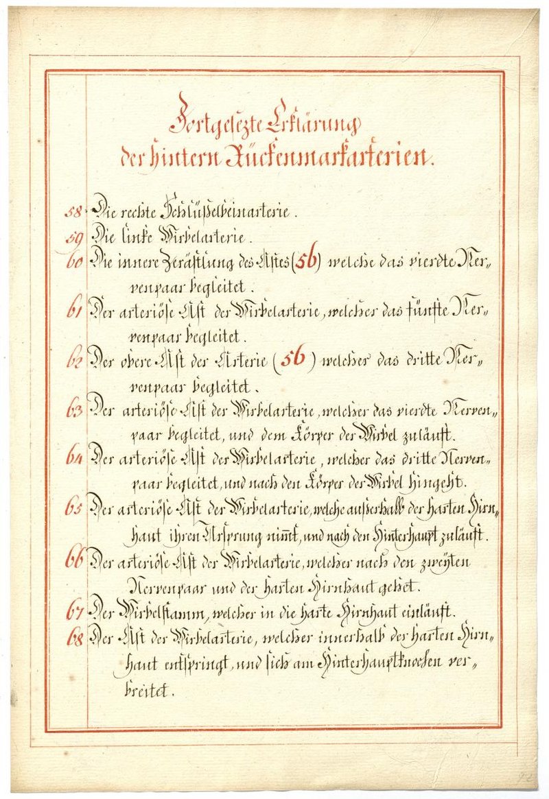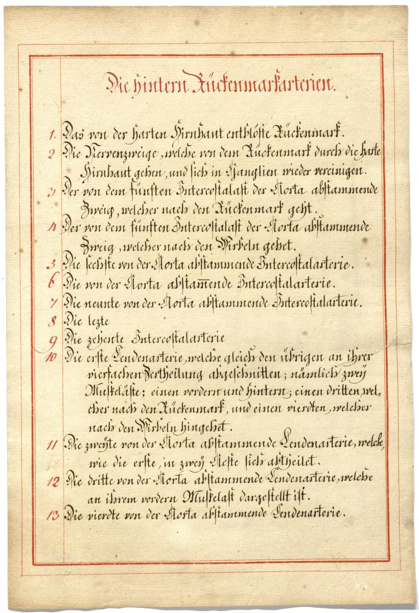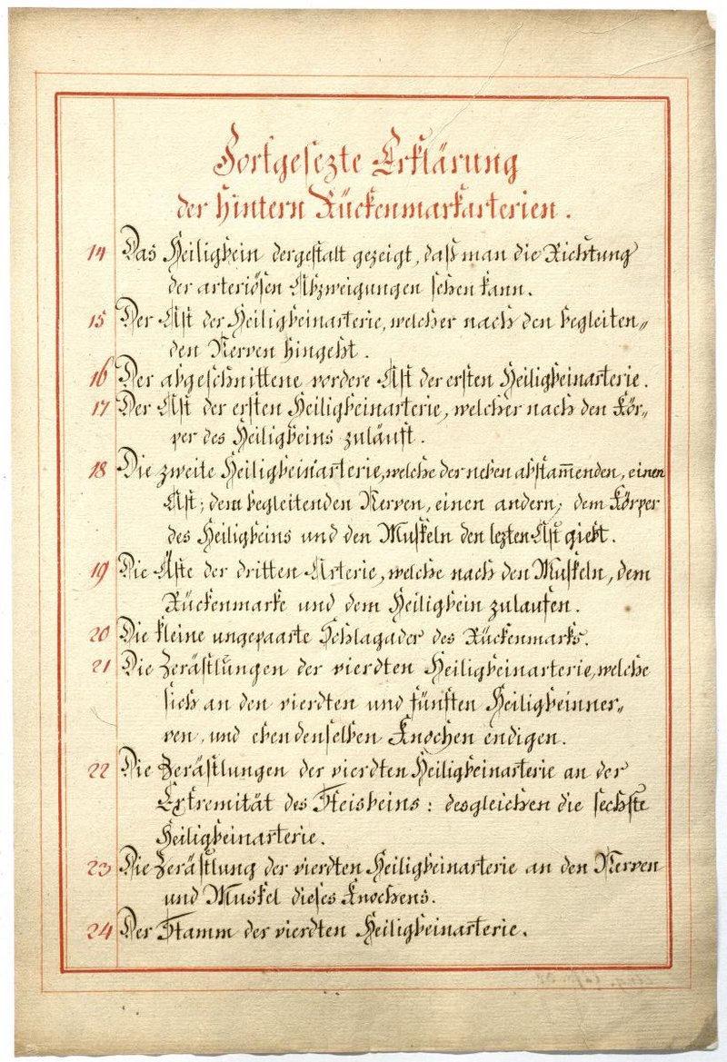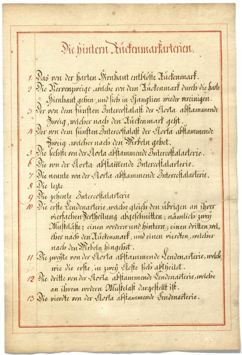 Der Text ist die ergänzende Beschreibung in deutscher Sprache zum anatomischen Wachsmodell der Darstellung der Lymph- und Blutgefäße der Blutversorgung des Rückenmarks.