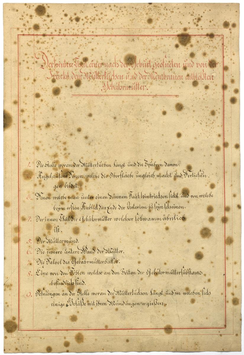Der Text ist die ergänzende Beschreibung in deutscher Sprache zum anatomischen Wachsmodell einer Gebärmutter.