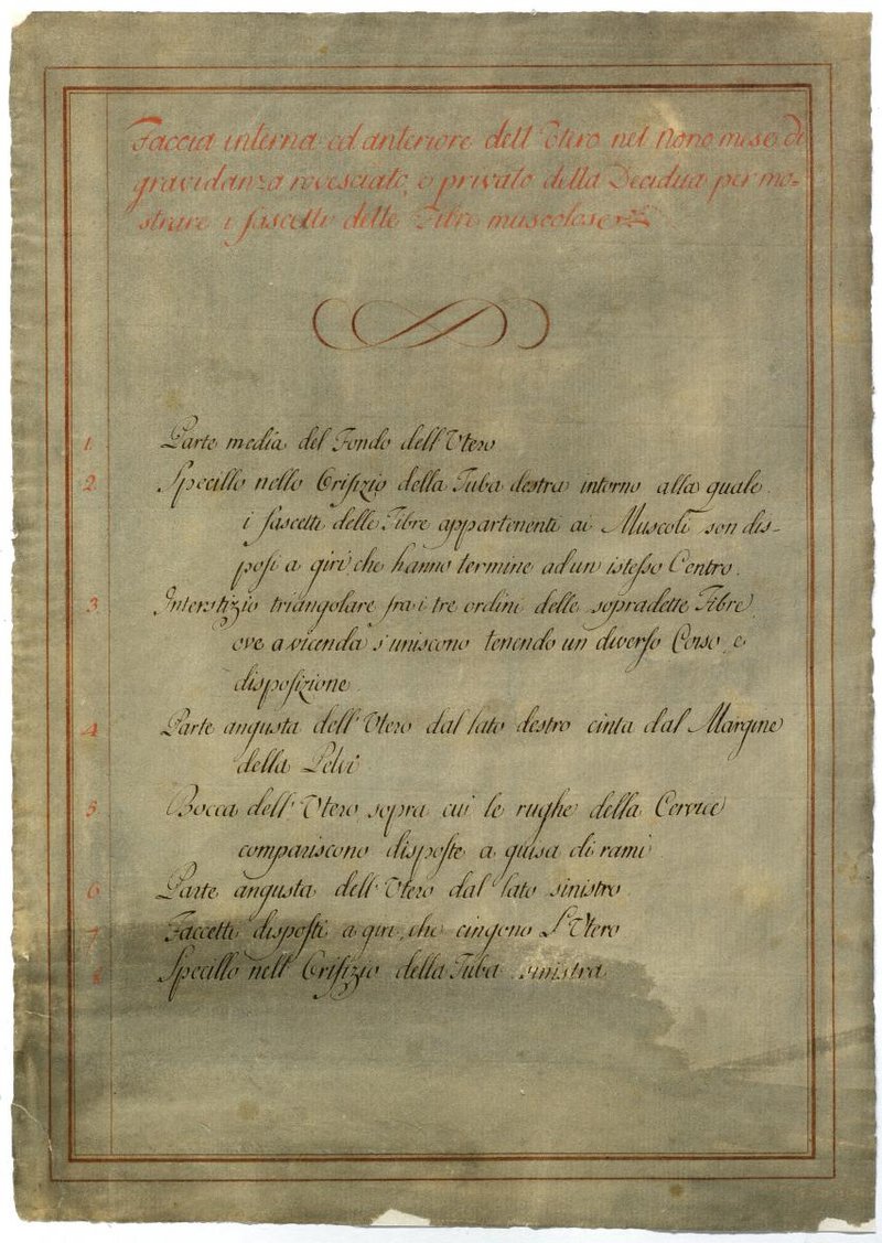 Der Text ist die ergänzende Beschreibung in italienischer Sprache zum anatomischen Wachsmodell einer Gebärmutter.