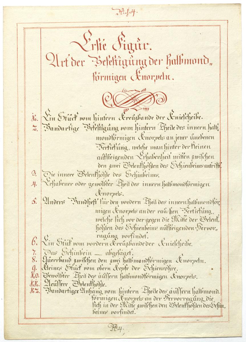 Der Text ist die ergänzende Beschreibung in deutscher Sprache zum anatomischen Wachsmodell des Knies.