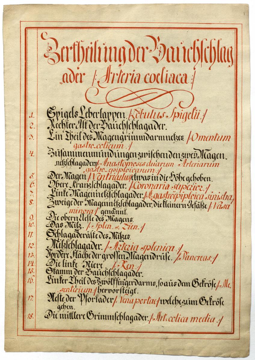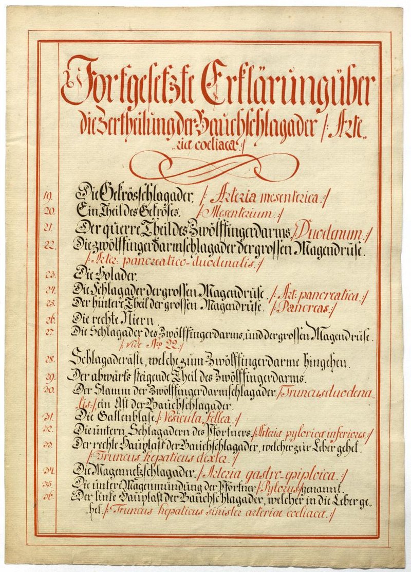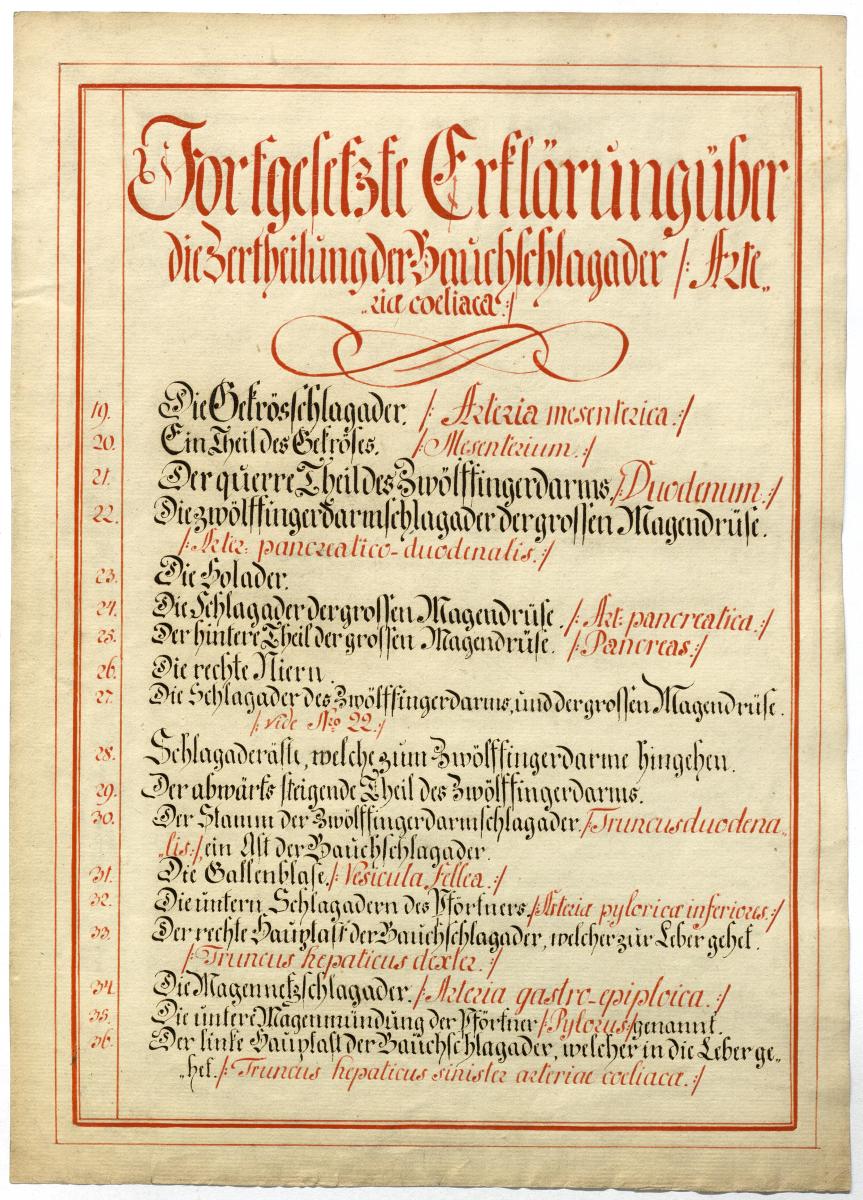Der Text ist die ergänzende Beschreibung in deutscher Sprache zum anatomischen Wachsmodell der Oberbaucharterien.
