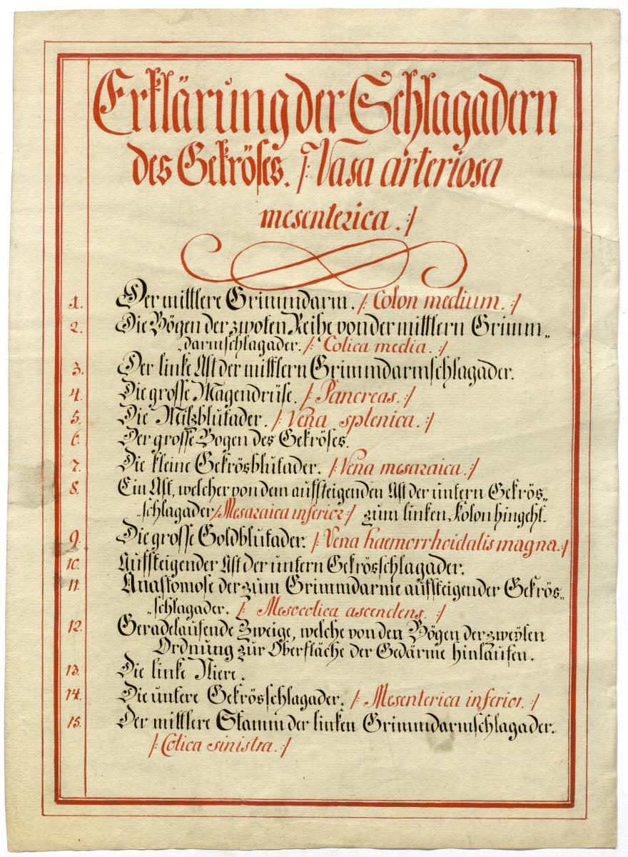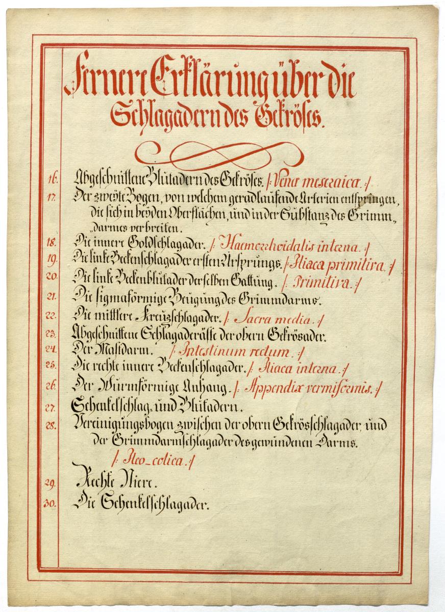 Der Text ist die ergänzende Beschreibung in deutscher Sprache zum anatomischen Wachsmodell der Dickdarmarterien. Blatt 3 fehlt.