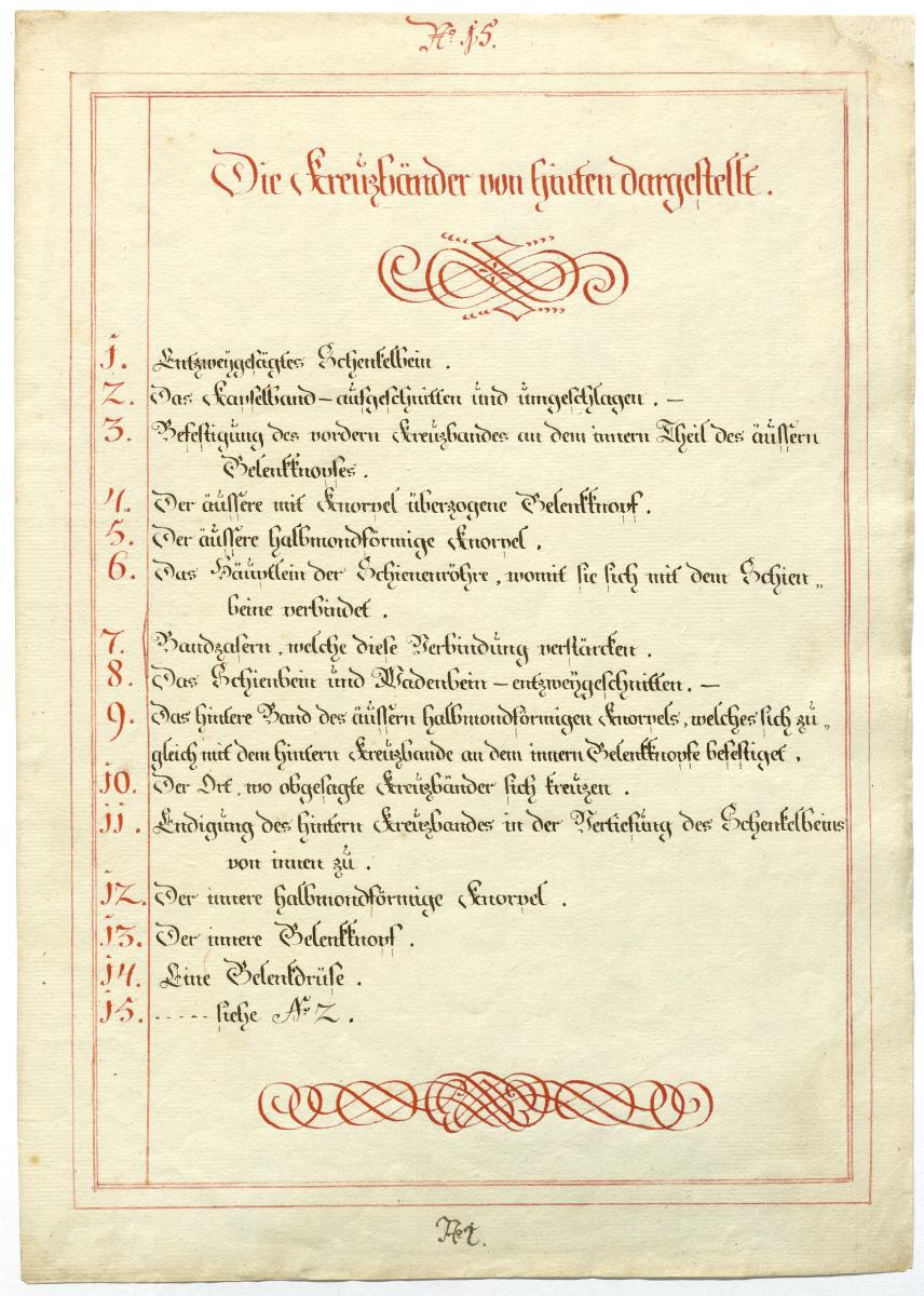 Der Text ist die ergänzende Beschreibung in deutscher Sprache zum anatomischen Wachsmodell des Knies.