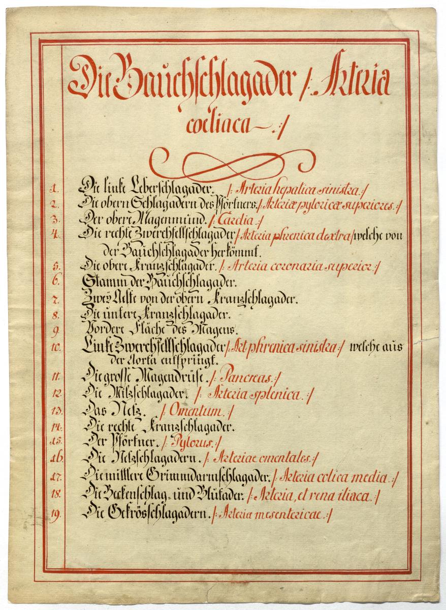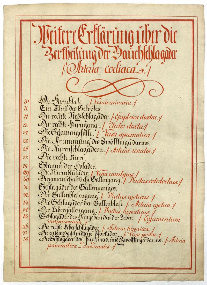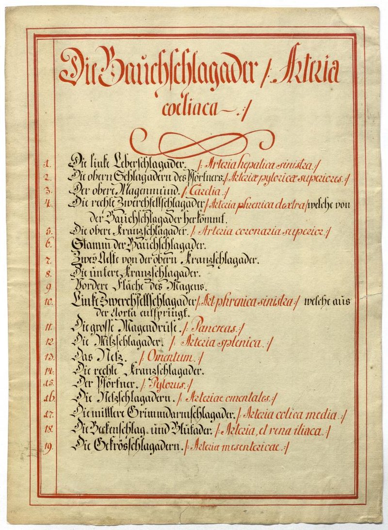 Der Text ist die ergänzende Beschreibung in deutscher Sprache zum anatomischen Wachsmodell der Oberbaucharterien.
