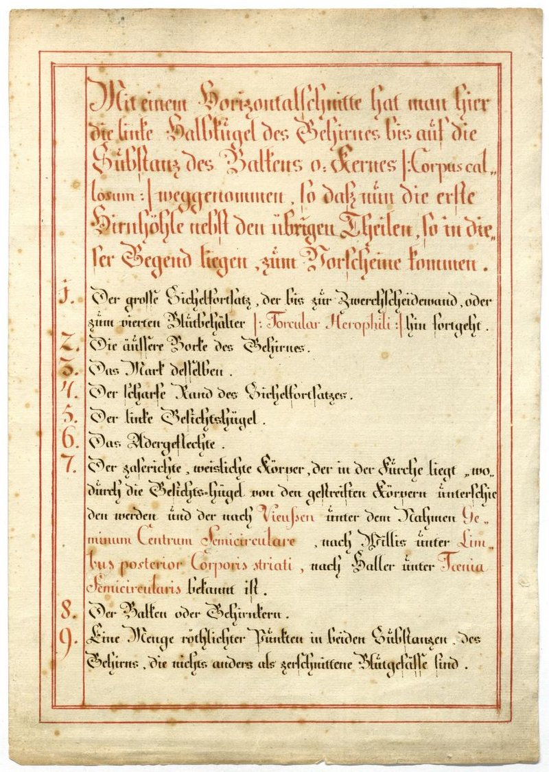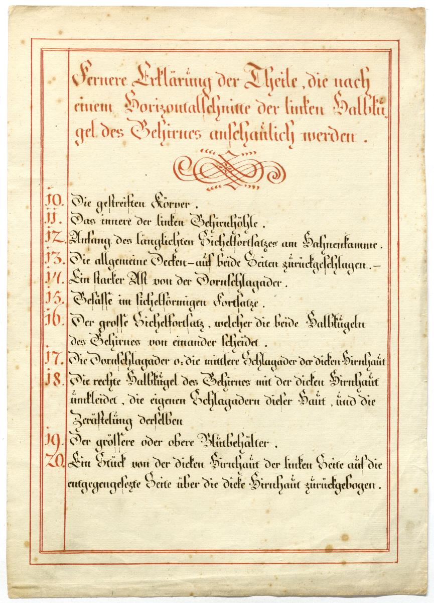 Der Text ist die ergänzende Beschreibung in deutscher Sprache zum anatomischen Wachsmodell des Horizontalschnittes.