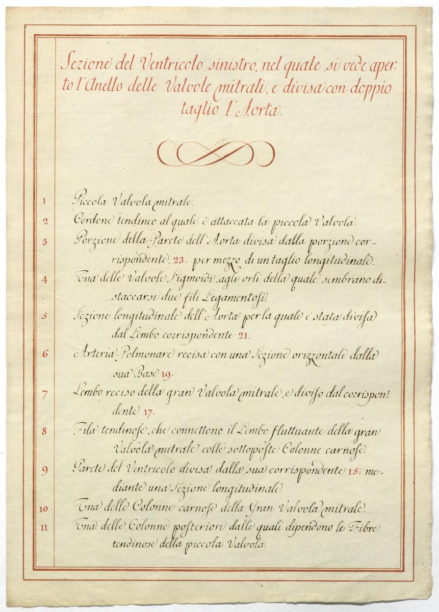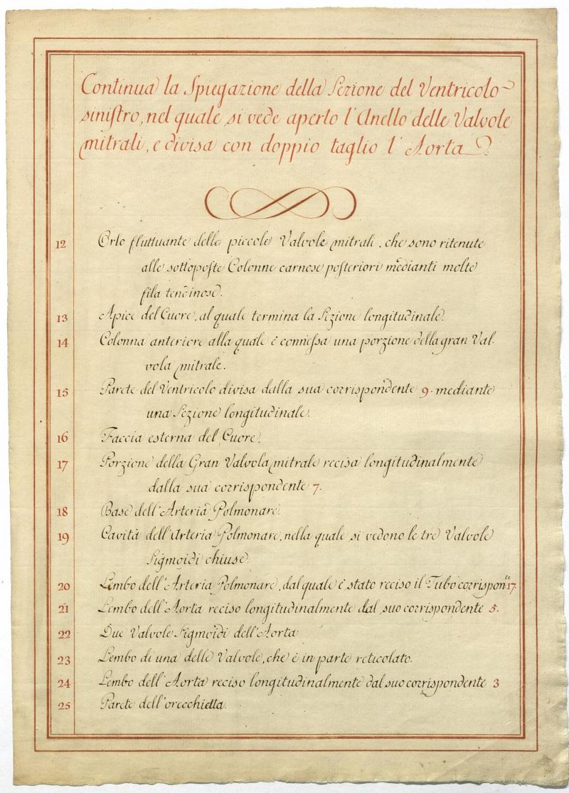 Der Text ist die ergänzende Beschreibung in italienischer Sprache zum anatomischen Wachsmodell des Herzens.