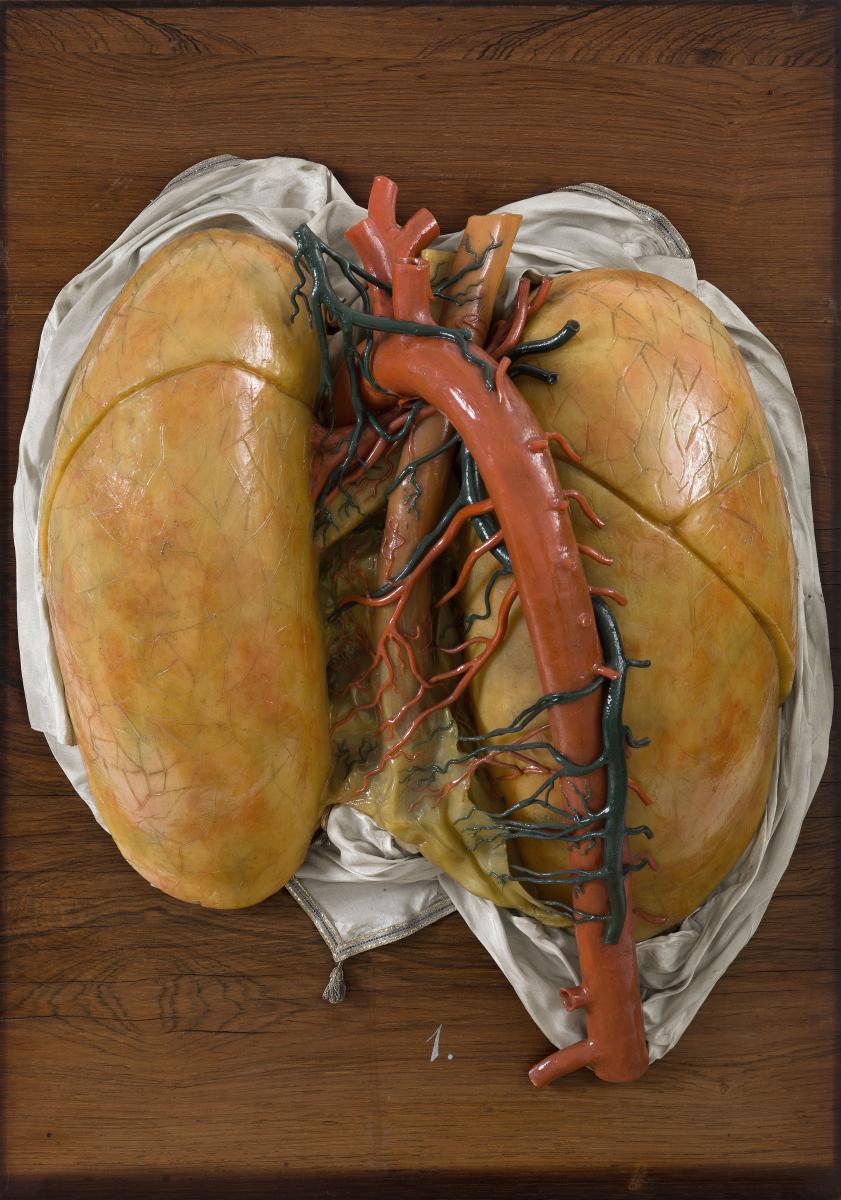 1. Die Lungen (Pulmones) und die Gebilde des hinteren Mittelfellraumes (Mediastinum), von hinten seitlich.