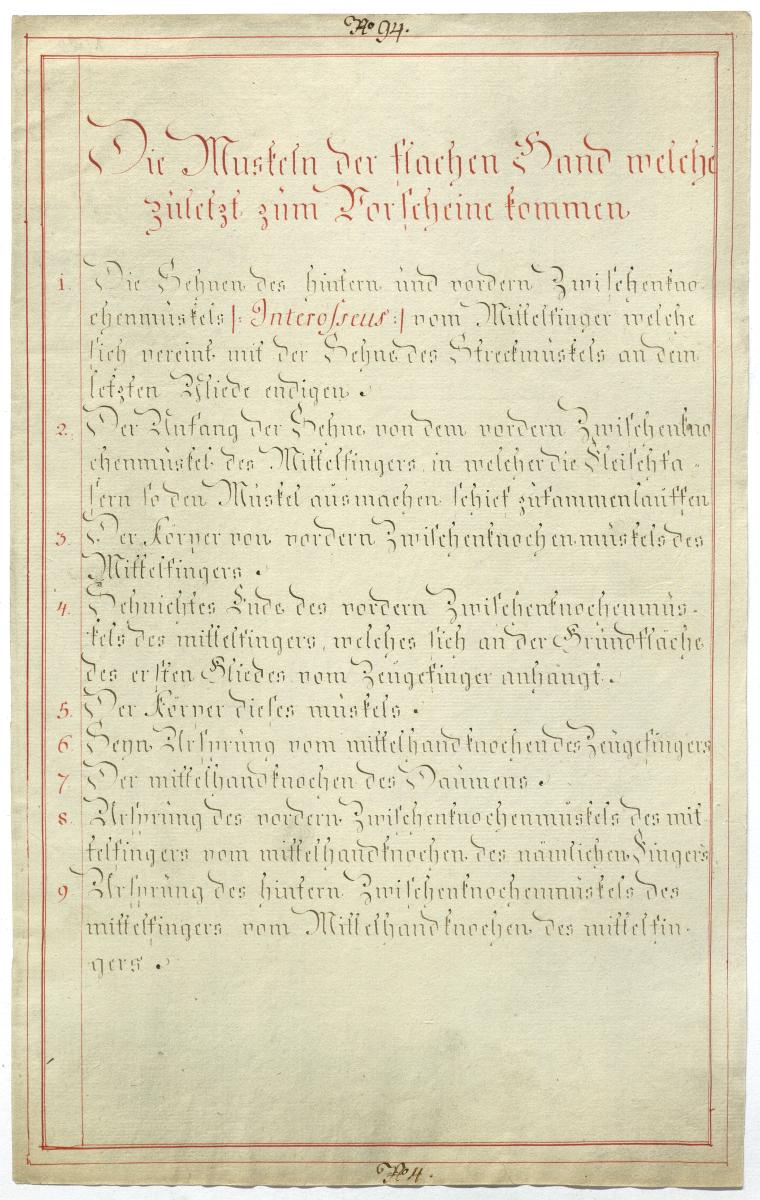 Der Text ist die ergänzende Beschreibung in deutscher Sprache zum anatomischen Wachsmodell der Handmuskulatur.