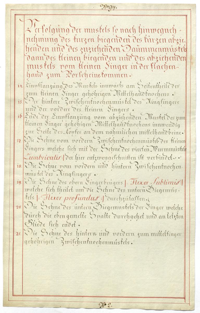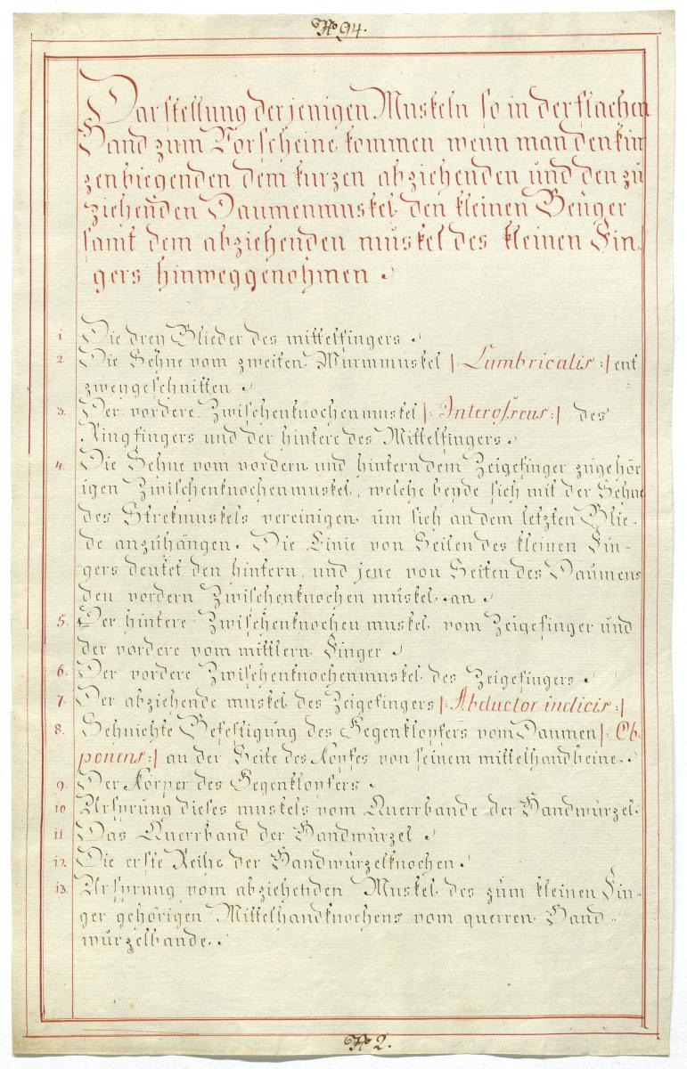 Der Text ist die ergänzende Beschreibung in deutscher Sprache zum anatomischen Wachsmodell der Handmuskulatur.