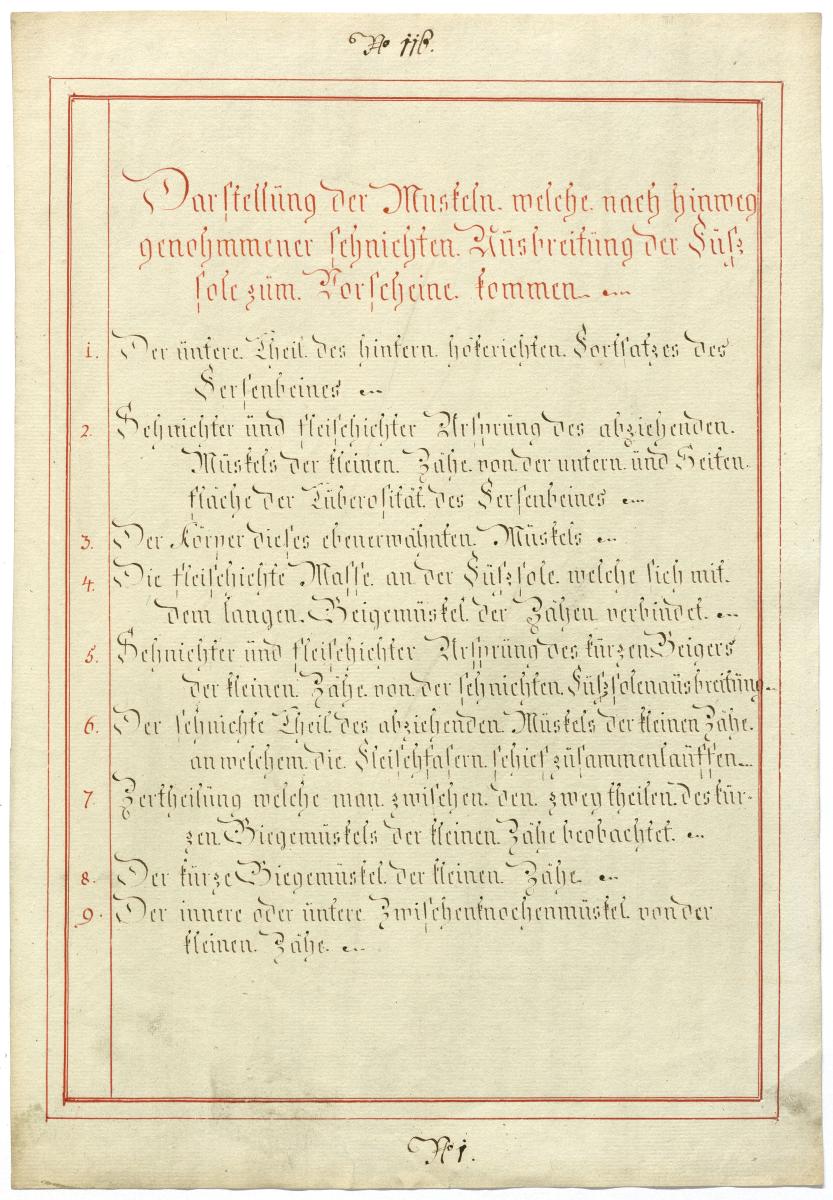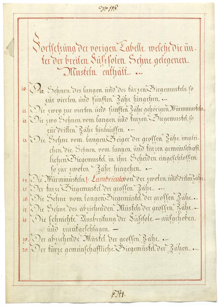 Der Text ist die ergänzende Beschreibung in deutscher Sprache zum anatomischen Wachsmodell der Muskeln der Fußsohle.