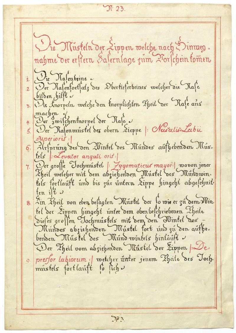 Der Text ist die ergänzende Beschreibung in deutscher Sprache zum anatomischen Wachsmodell der Gesichtsmuskulatur.