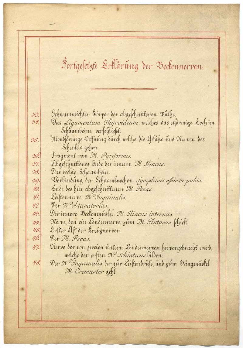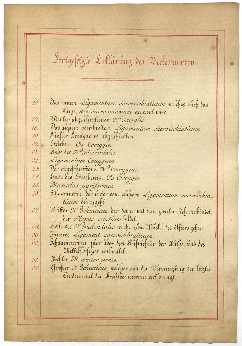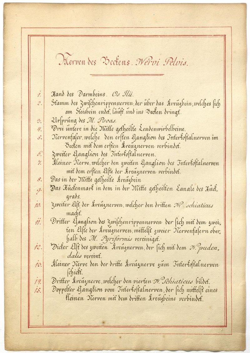 Der Text ist die ergänzende Beschreibung in deutscher Sprache zum anatomischen Wachsmodell des Plexus sacralis.