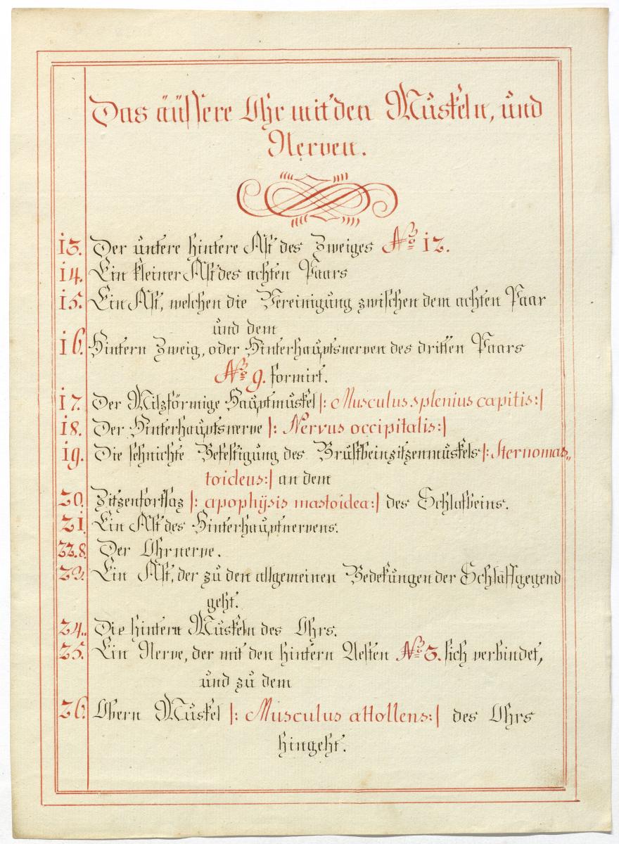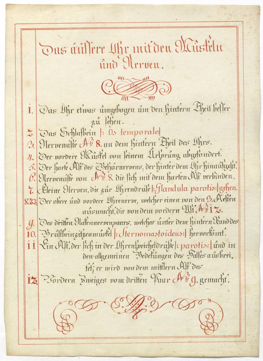 Der Text ist die ergänzende Beschreibung in deutscher Sprache zum anatomischen Wachsmodell des Ohres.