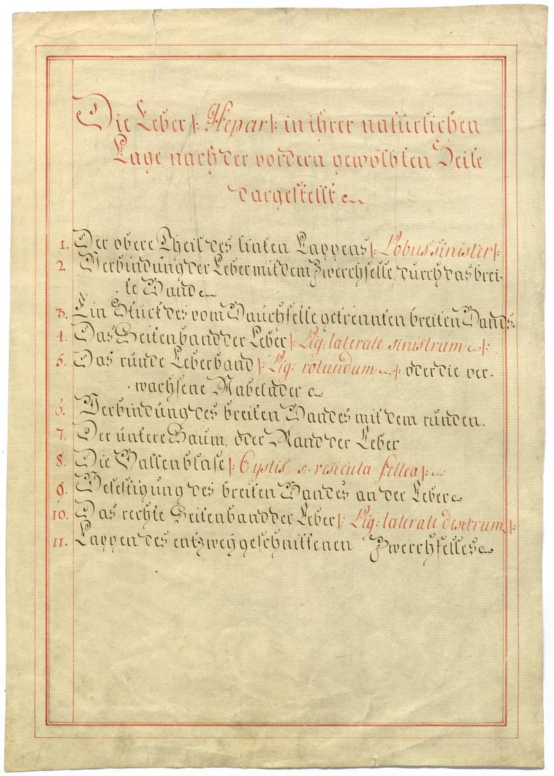 Der Text ist die ergänzende Beschreibung in deutscher Sprache zum anatomischen Wachsmodell der Leber.