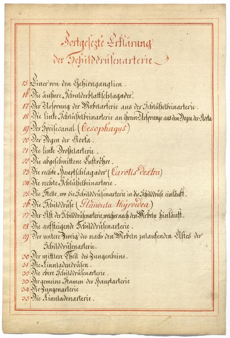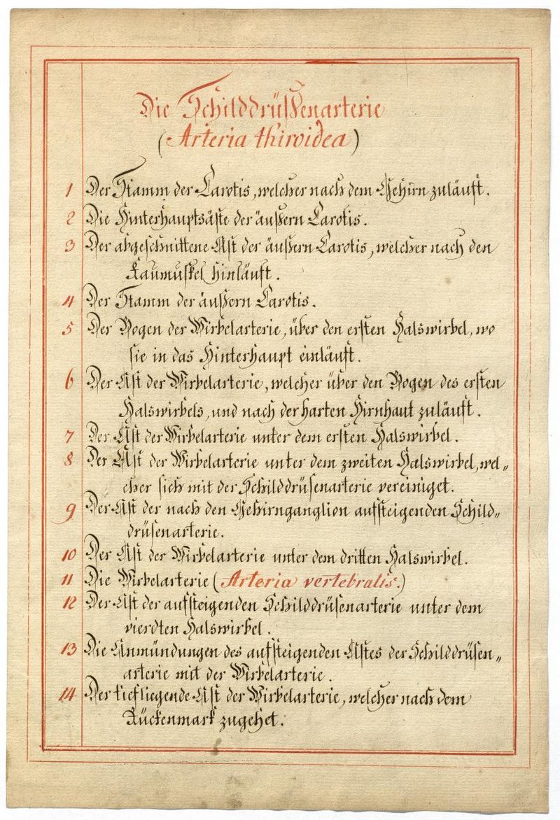 Der Text ist die ergänzende Beschreibung in deutscher Sprache zum anatomischen Wachsmodell der Äste des Aortenbogens.