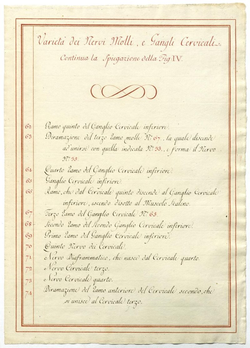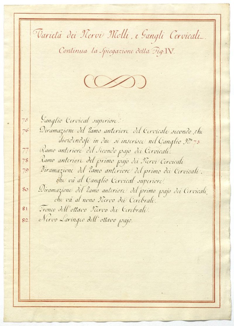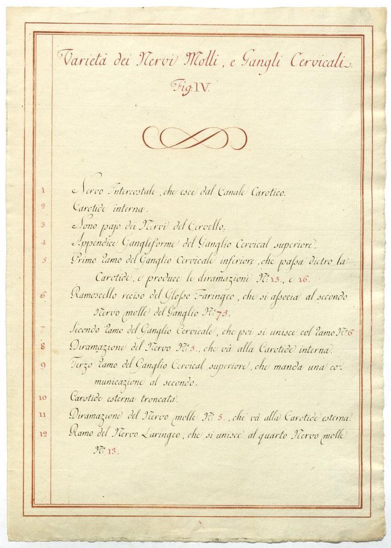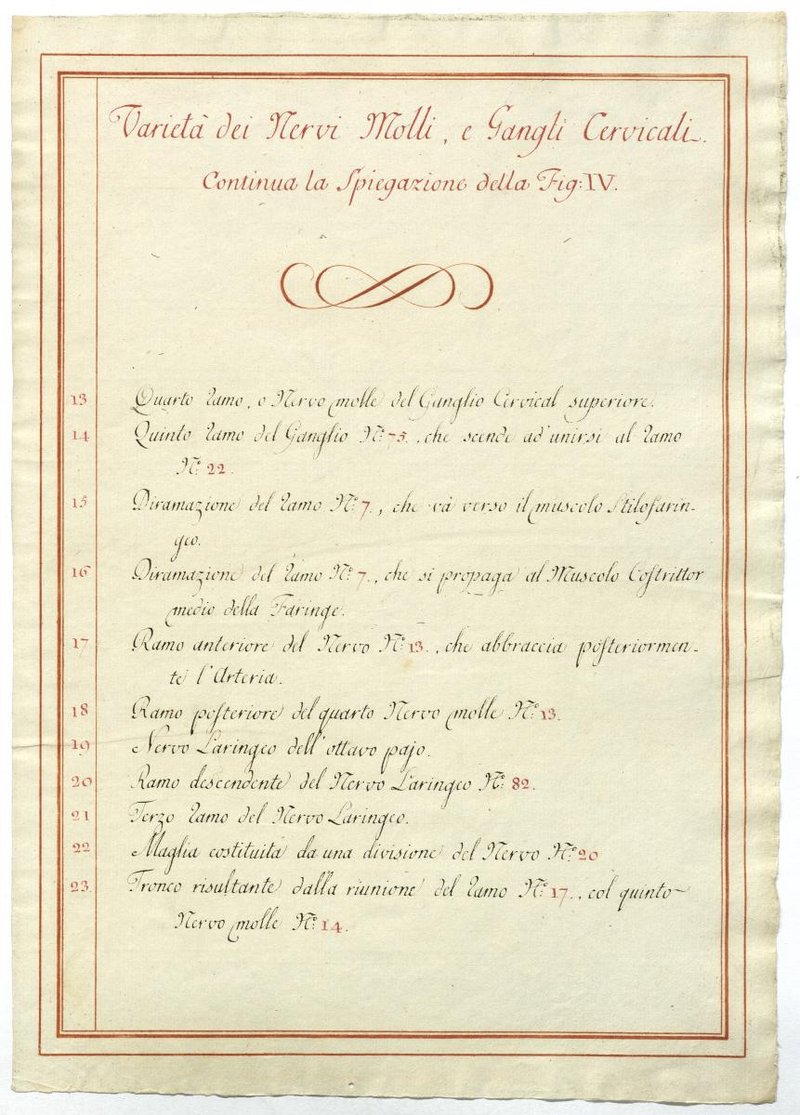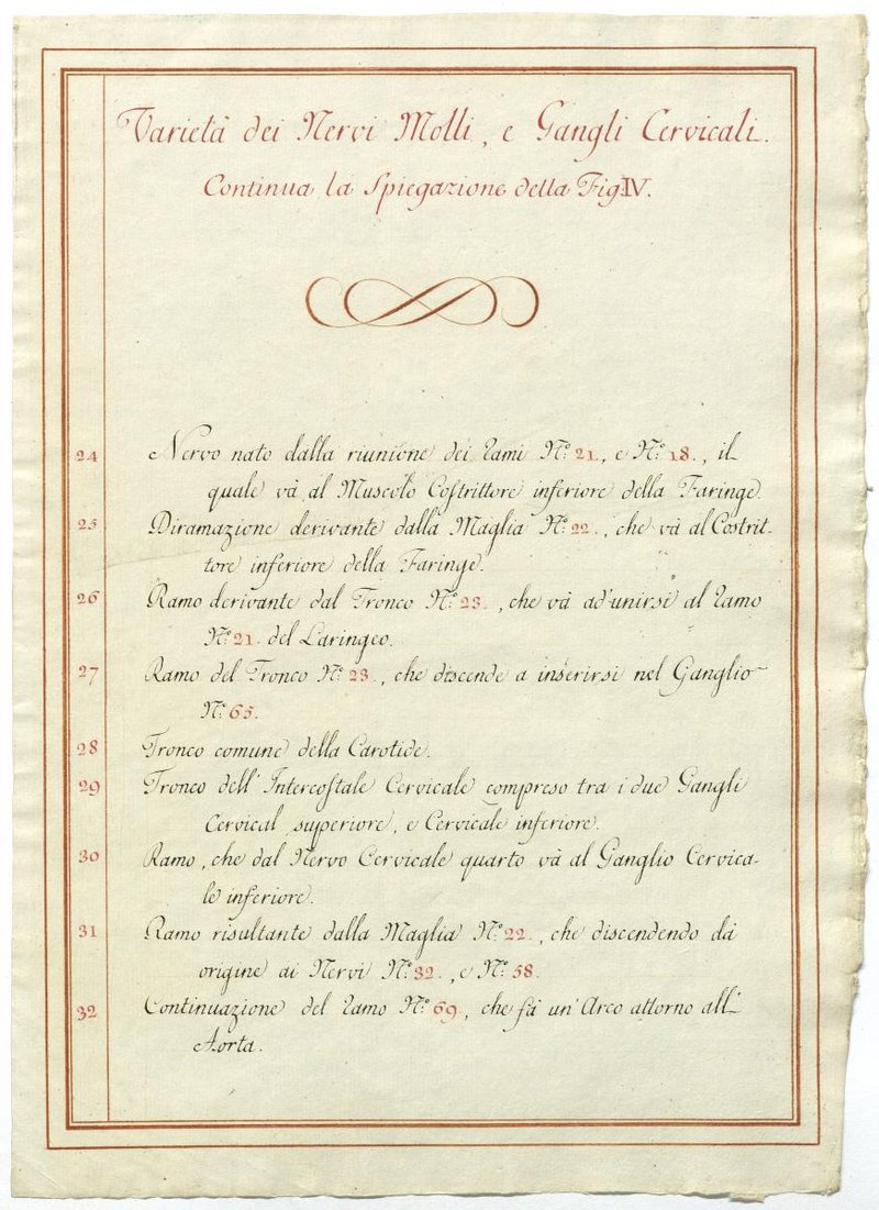 Der Text ist die ergänzende Beschreibung in italienischer Sprache zum anatomischen Wachsmodell der Halsganglien.