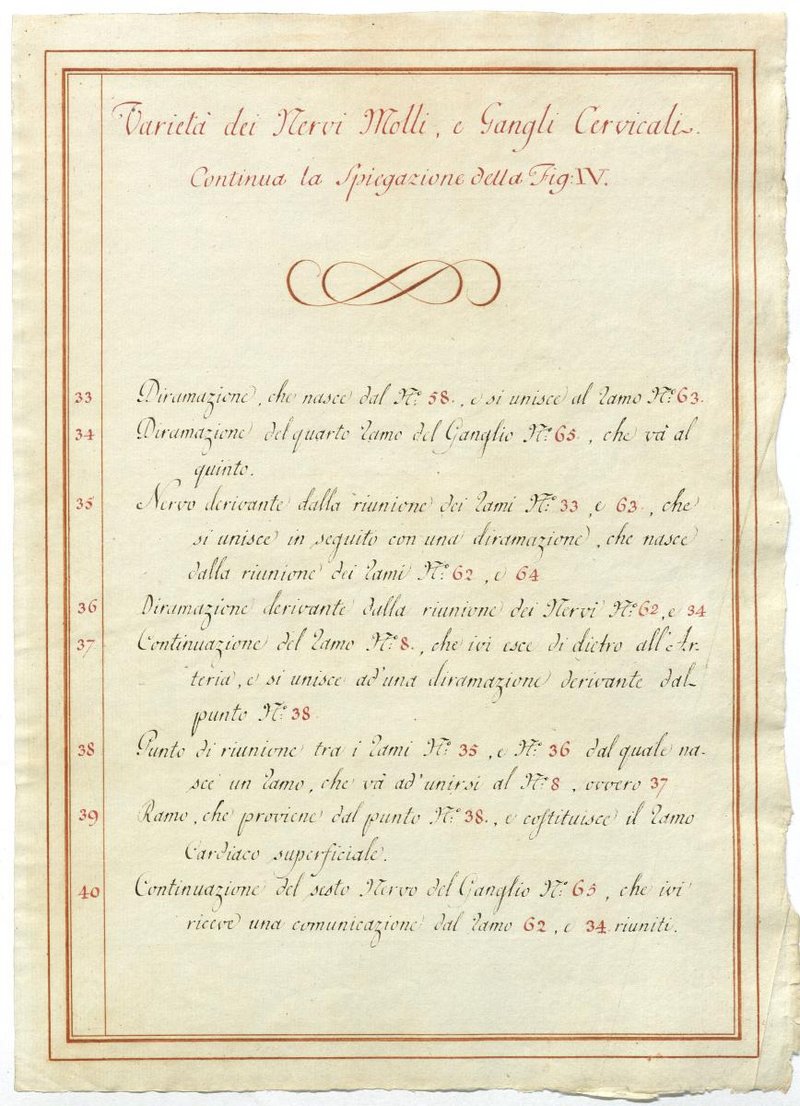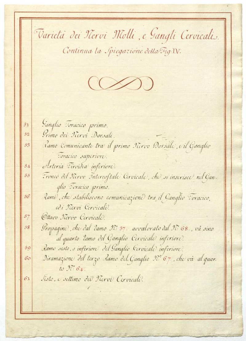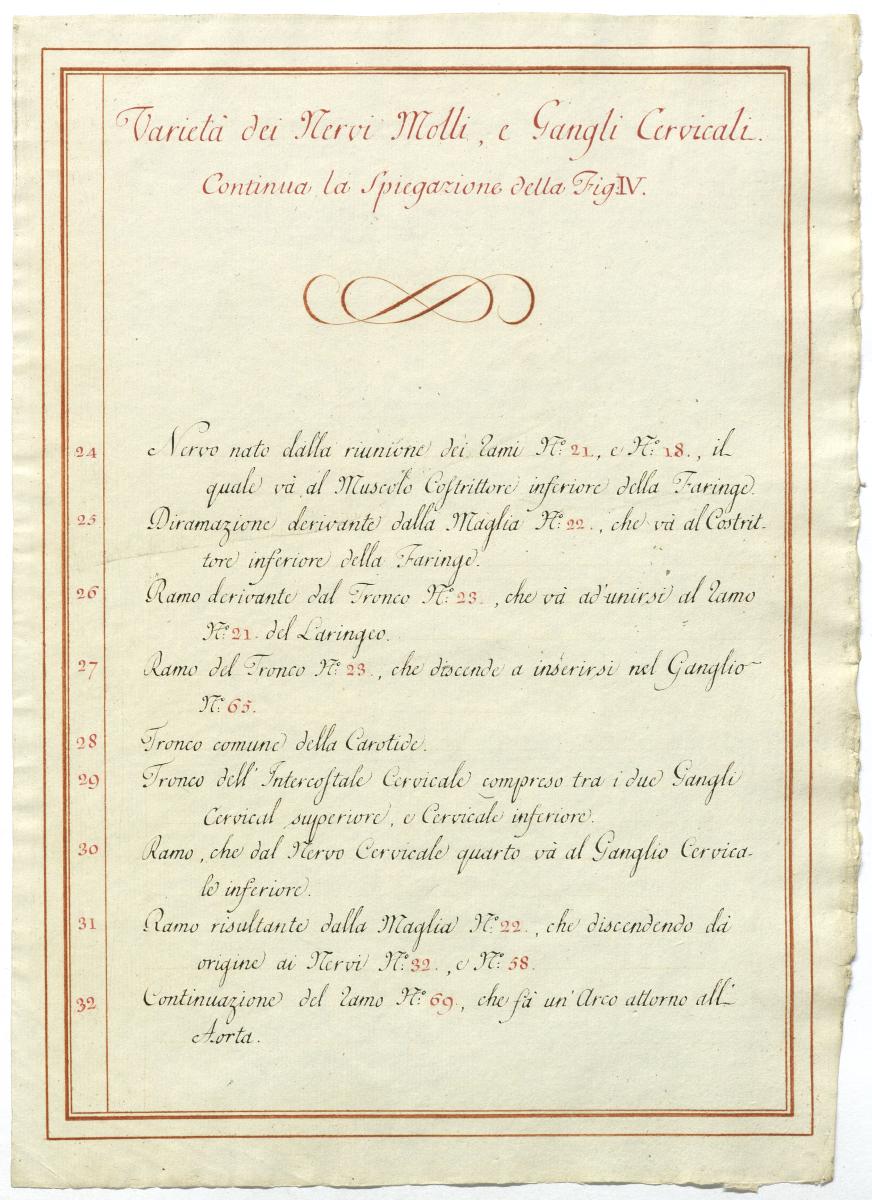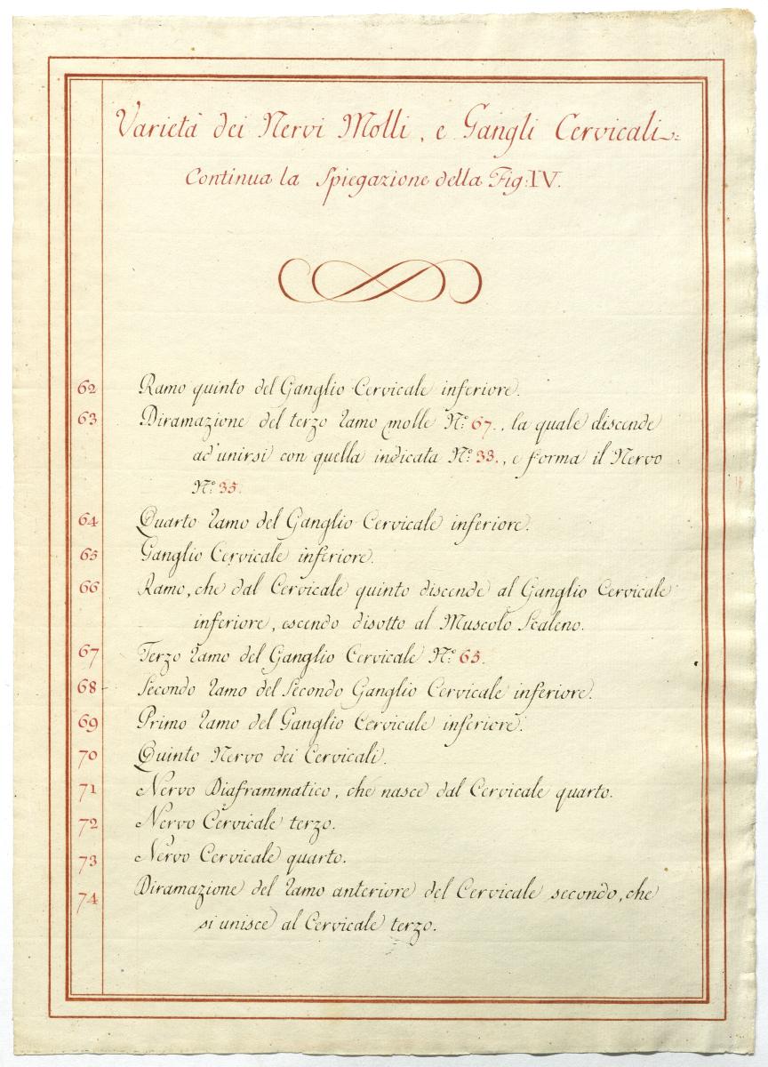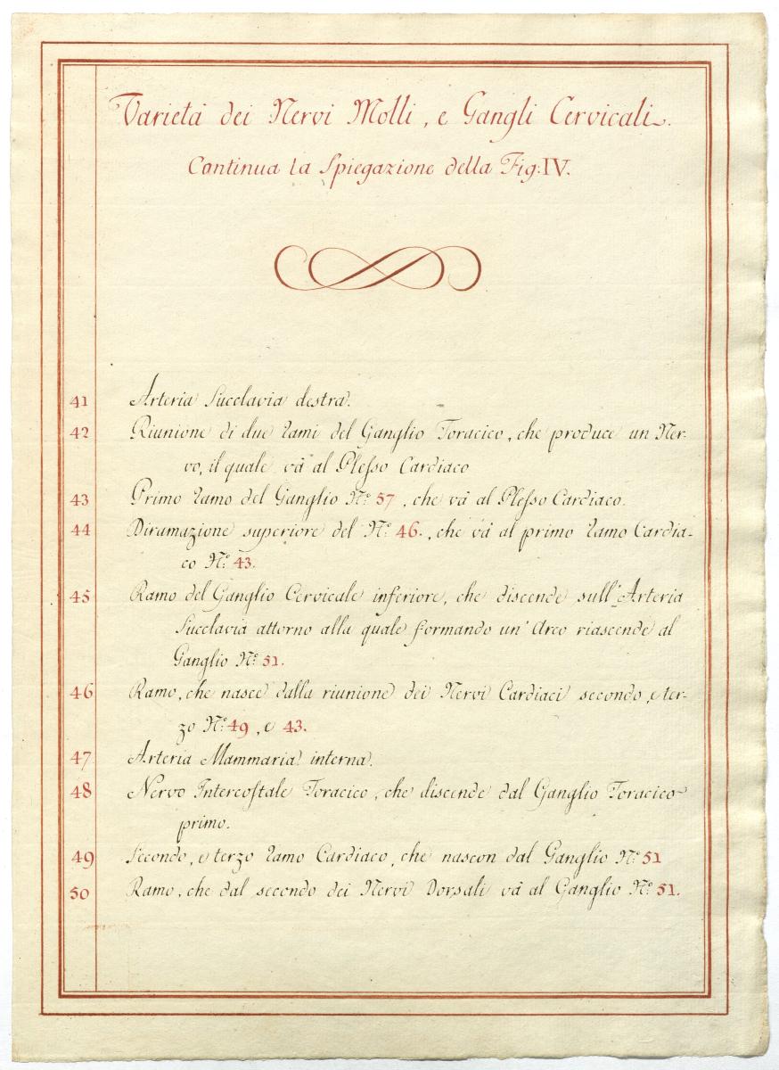 Der Text ist die ergänzende Beschreibung in italienischer Sprache zum anatomischen Wachsmodell der Halsganglien.