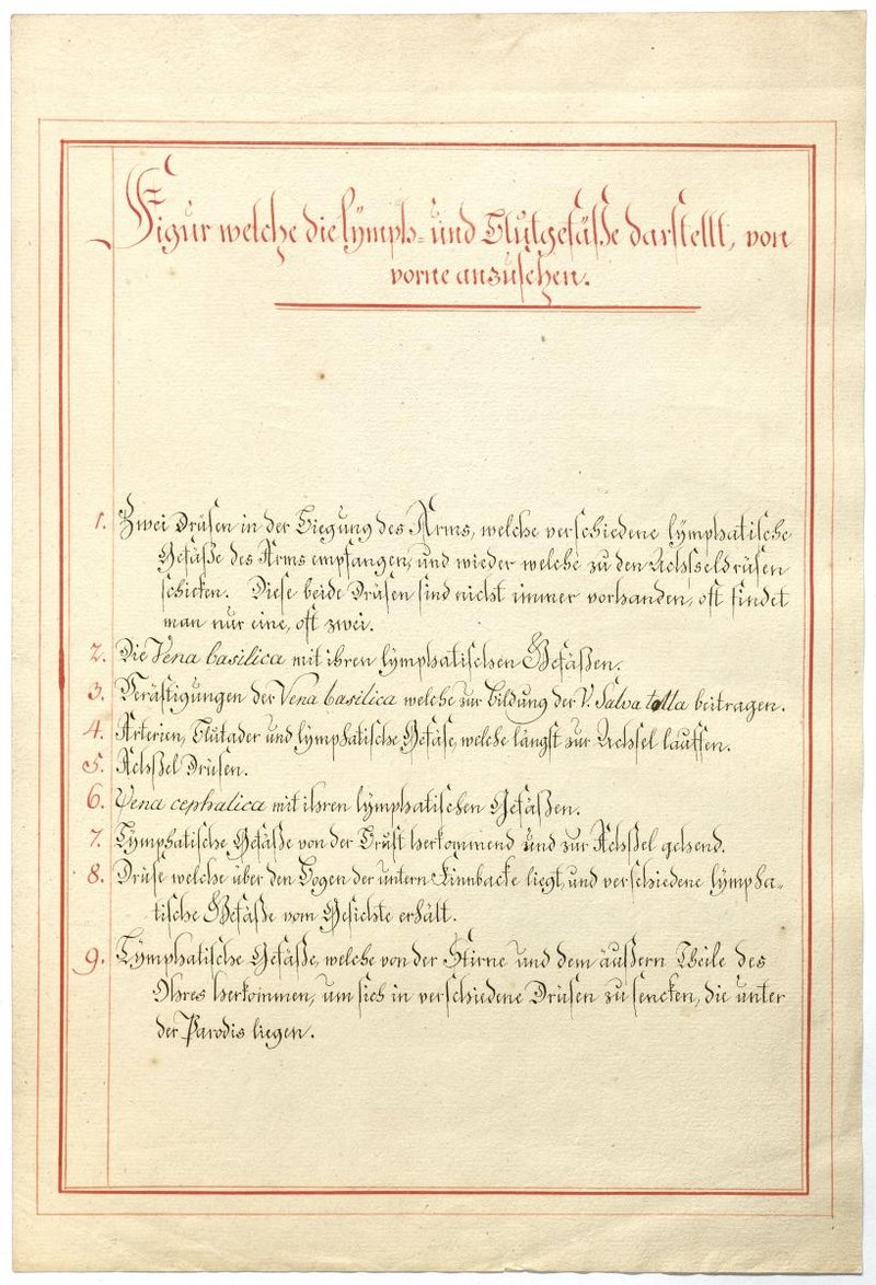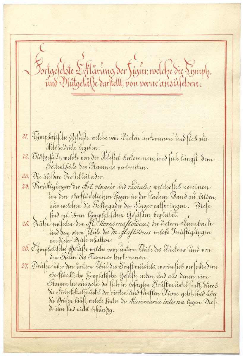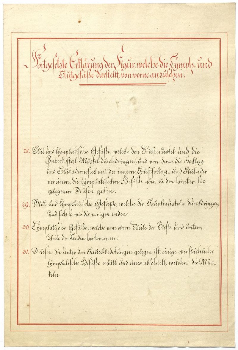 Der Text ist die ergänzende Beschreibung in deutscher Sprache zum anatomischen Wachsmodell der Knochenverbindungen. Blatt 2 fehlt.