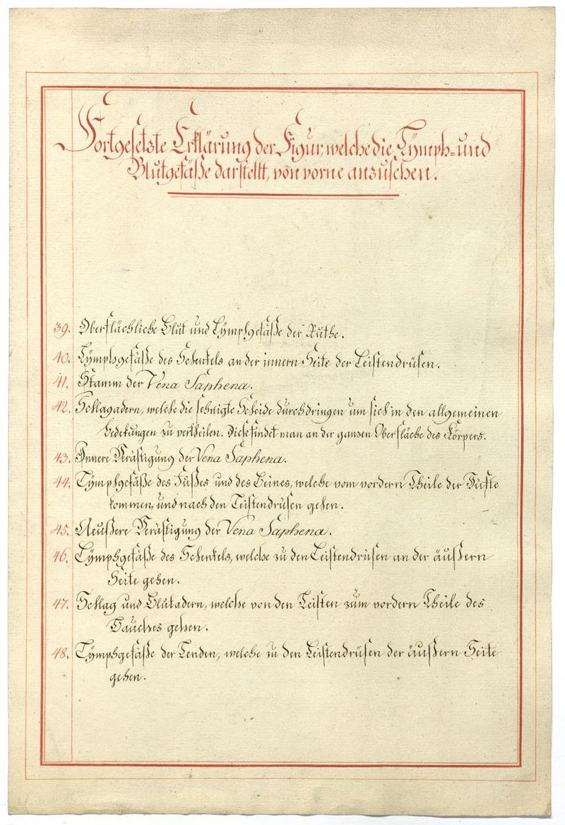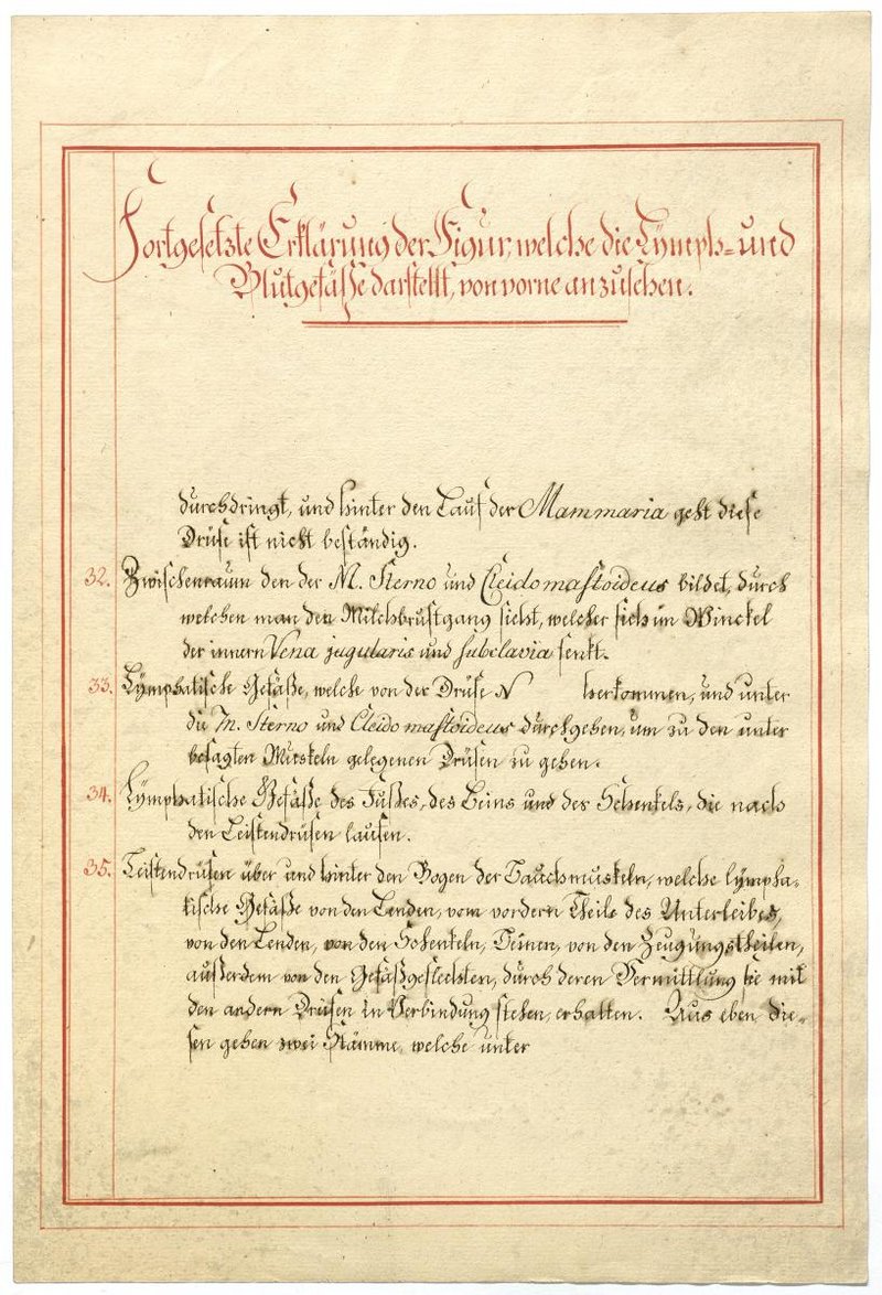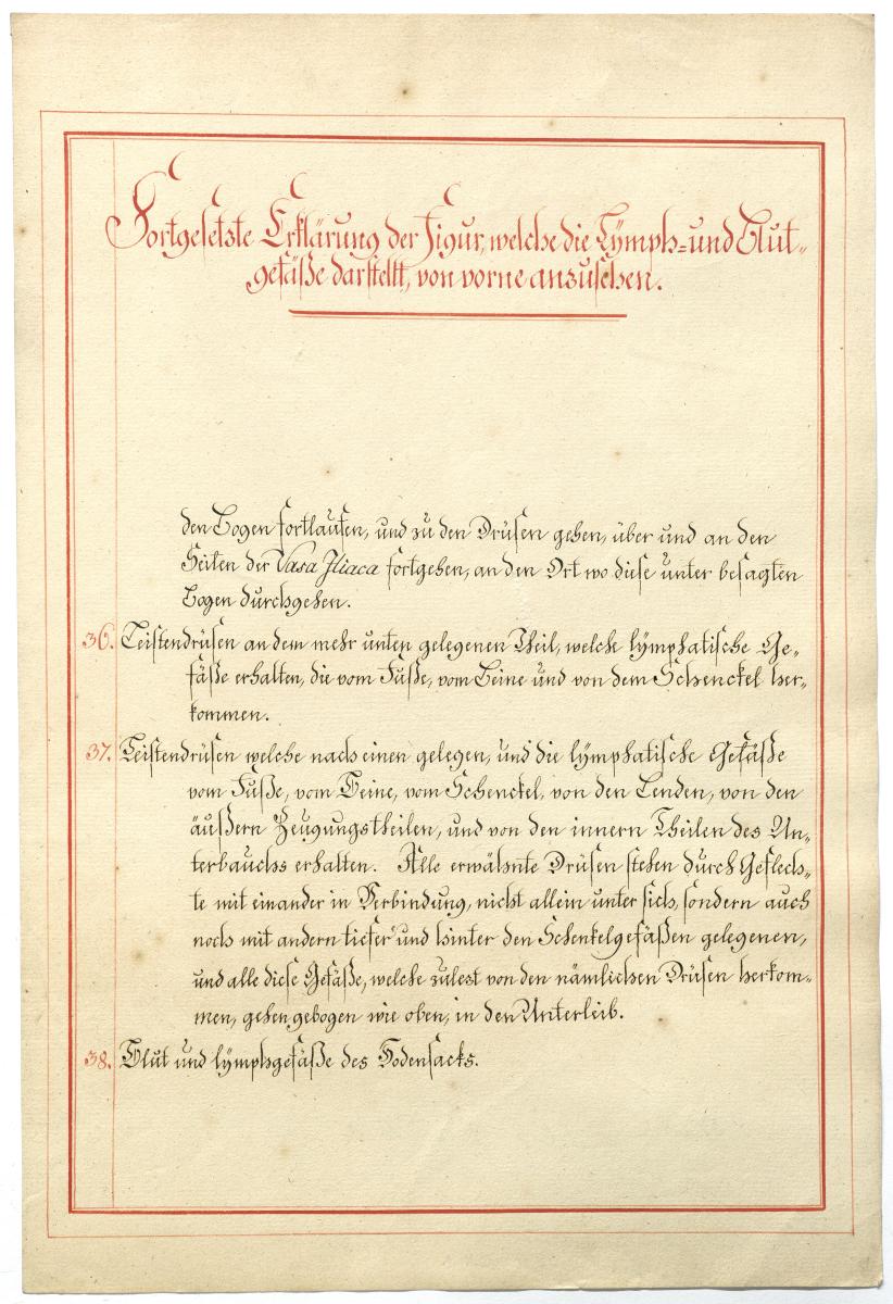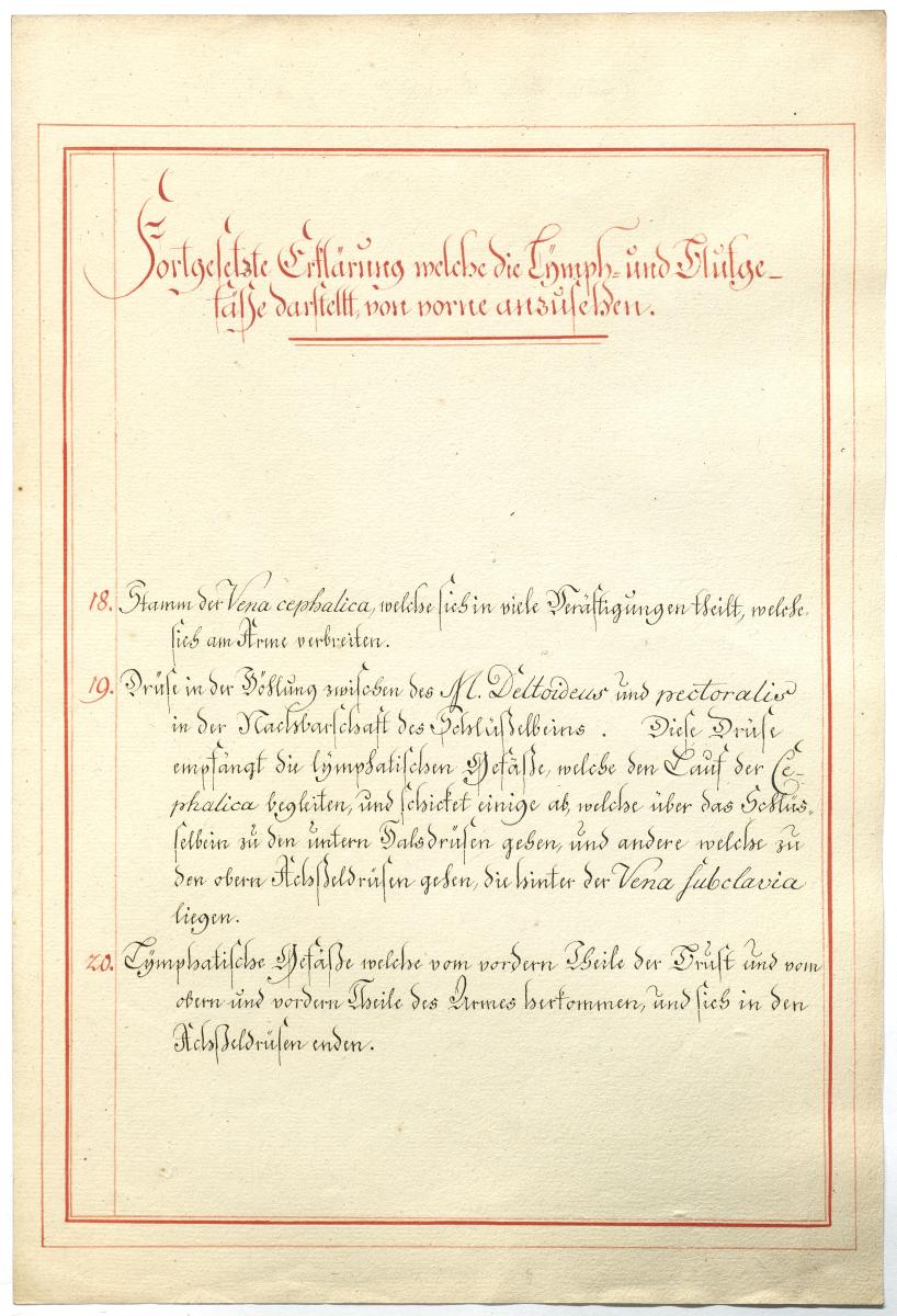 Der Text ist die ergänzende Beschreibung in deutscher Sprache zum anatomischen Wachsmodell der Knochenverbindungen. Blatt 2 fehlt.
