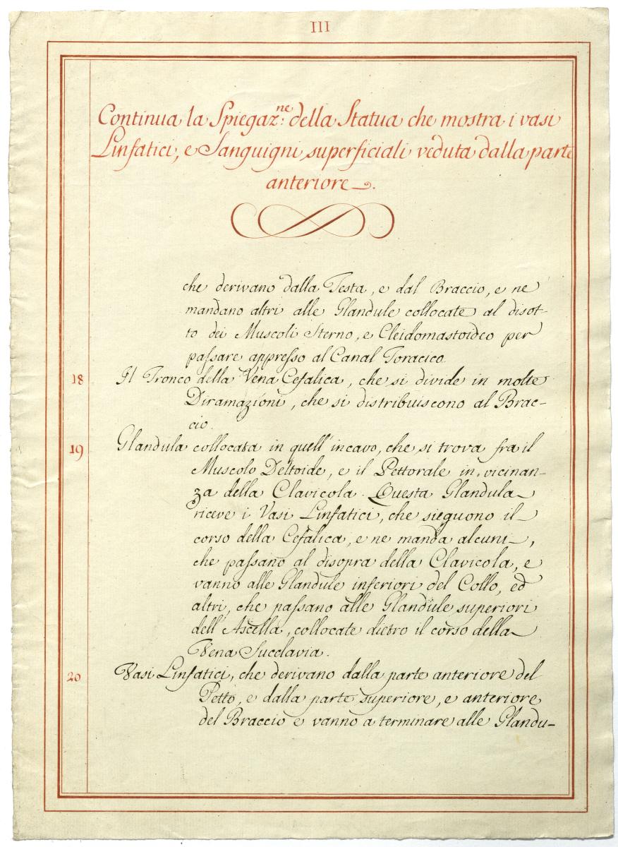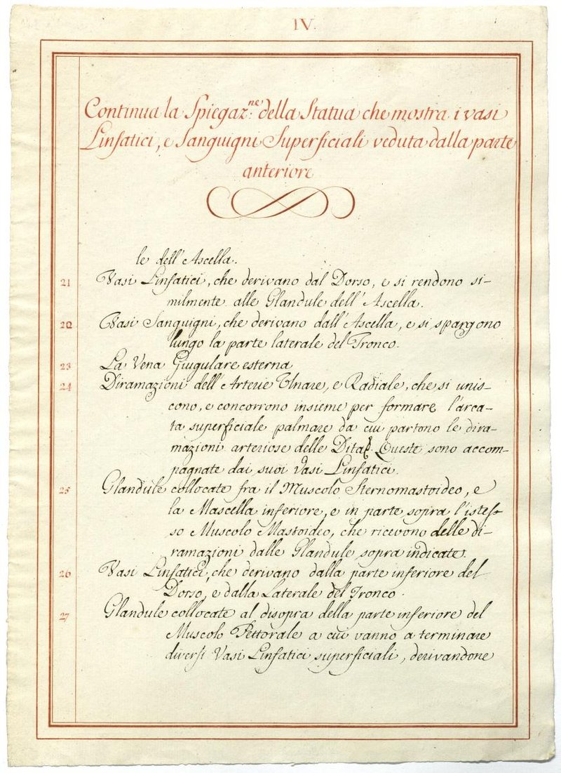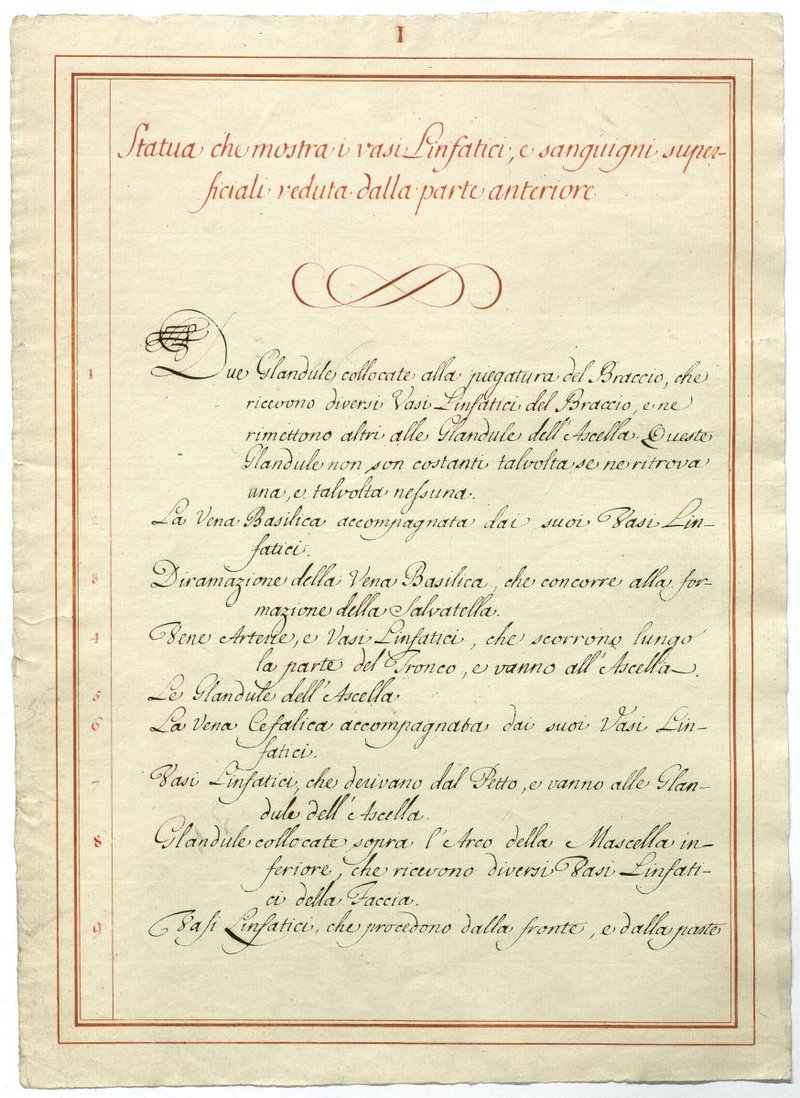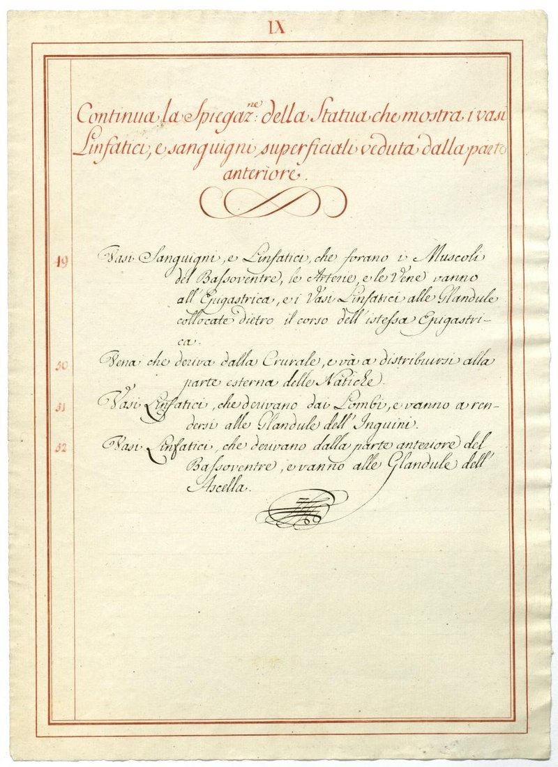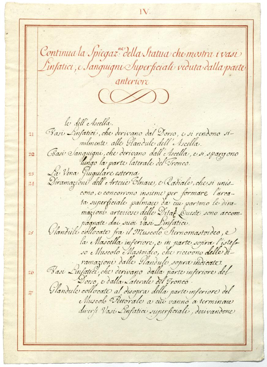 Der Text ist die ergänzende Beschreibung in italienischer Sprache zum anatomischen Wachsmodell der Knochenverbindungen.
