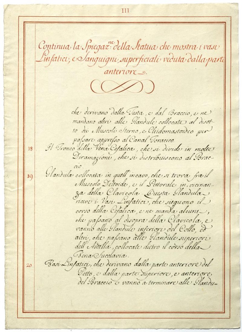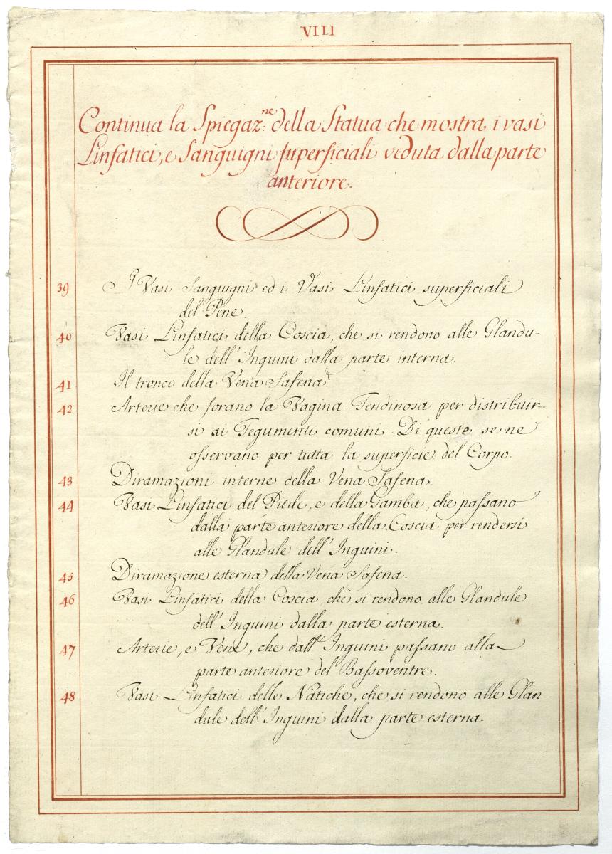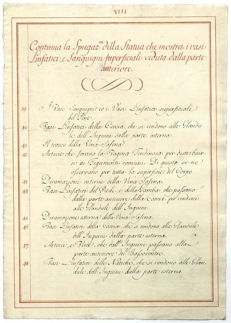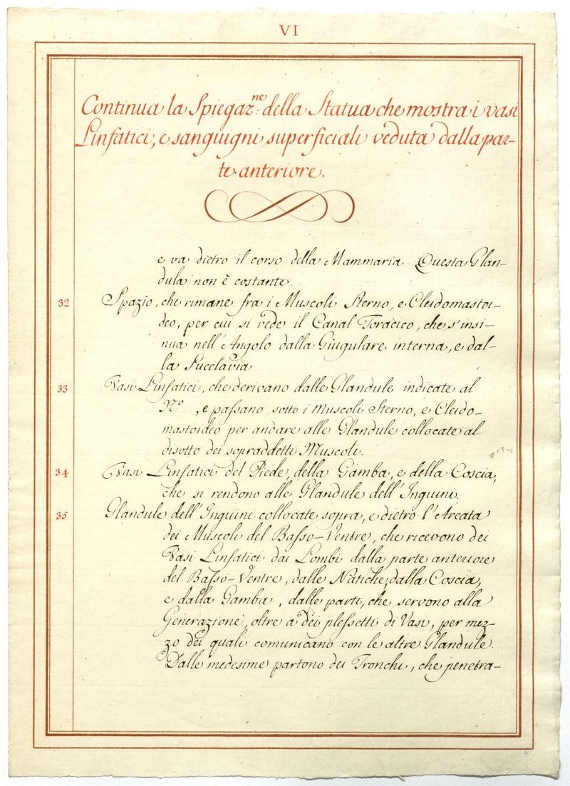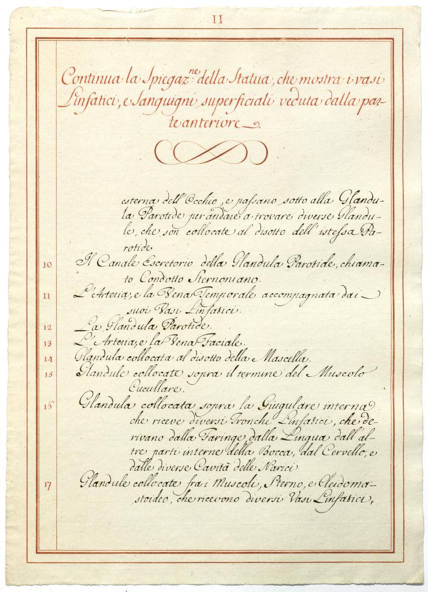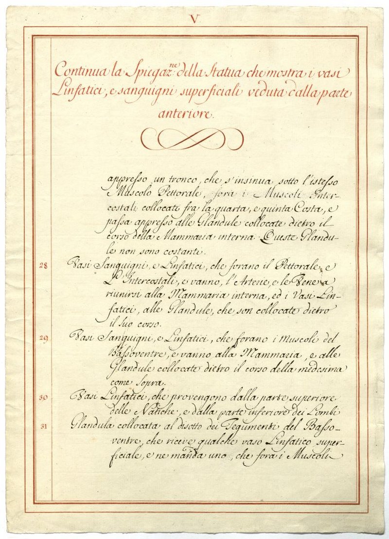 Der Text ist die ergänzende Beschreibung in italienischer Sprache zum anatomischen Wachsmodell der Knochenverbindungen.