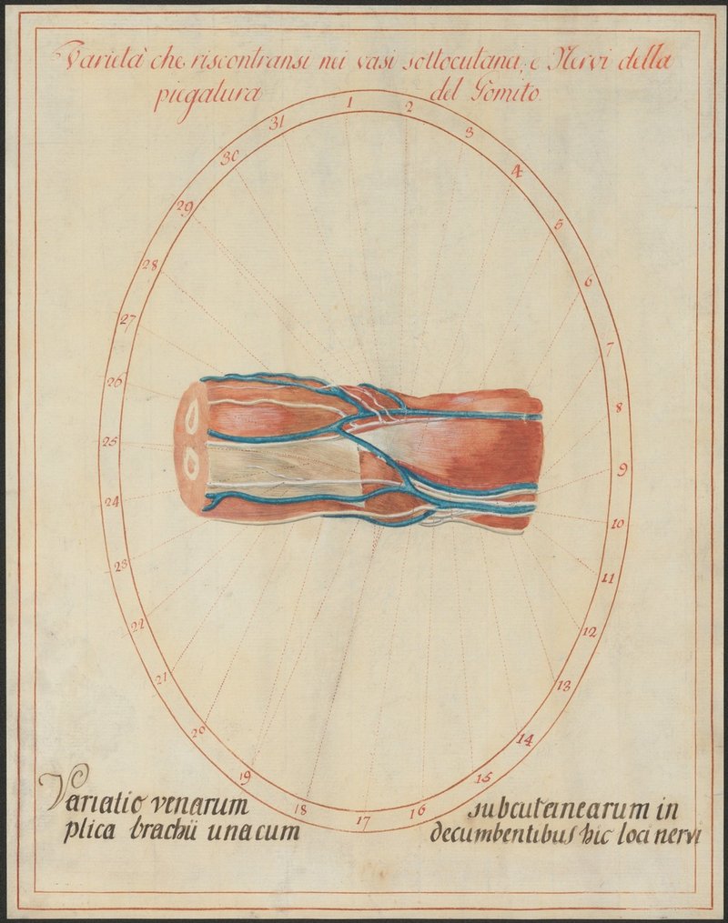 Die oberflächlichen Venen und Nerven in der Armbeuge (Venae cutaneae cubiti).