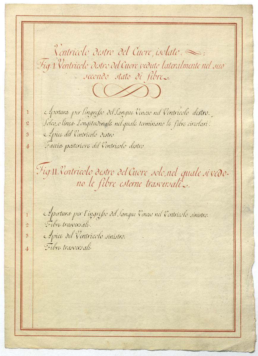 Der Text ist die ergänzende Beschreibung in italienischer Sprache zum anatomischen Wachsmodell des Herzens.