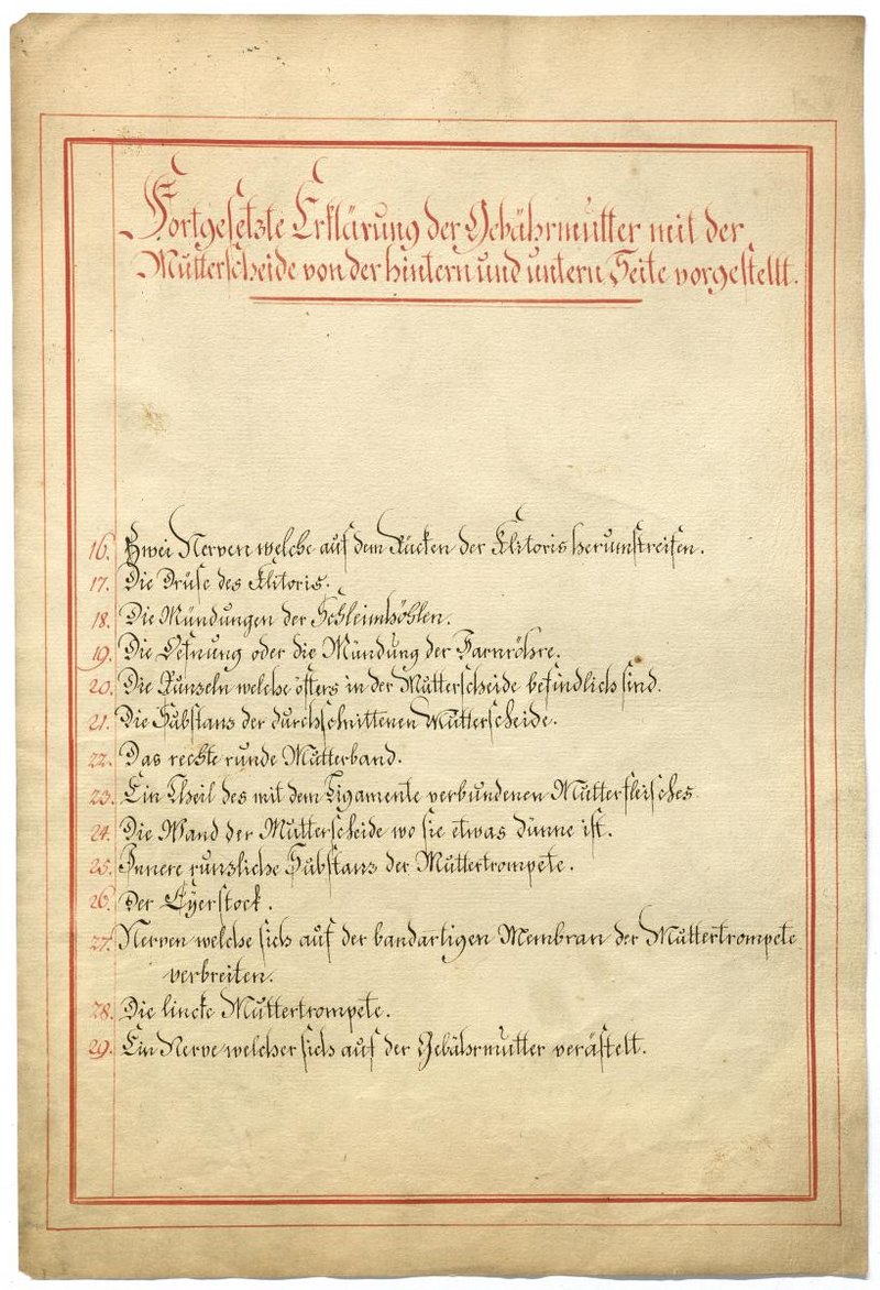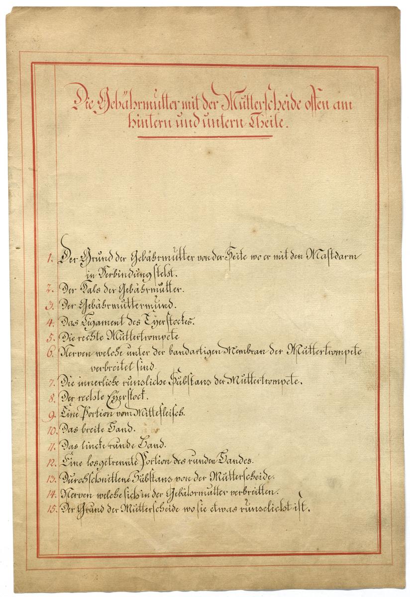 Der Text ist die ergänzende Beschreibung in deutscher Sprache zum anatomischen Wachsmodell des weiblichen Genitale.