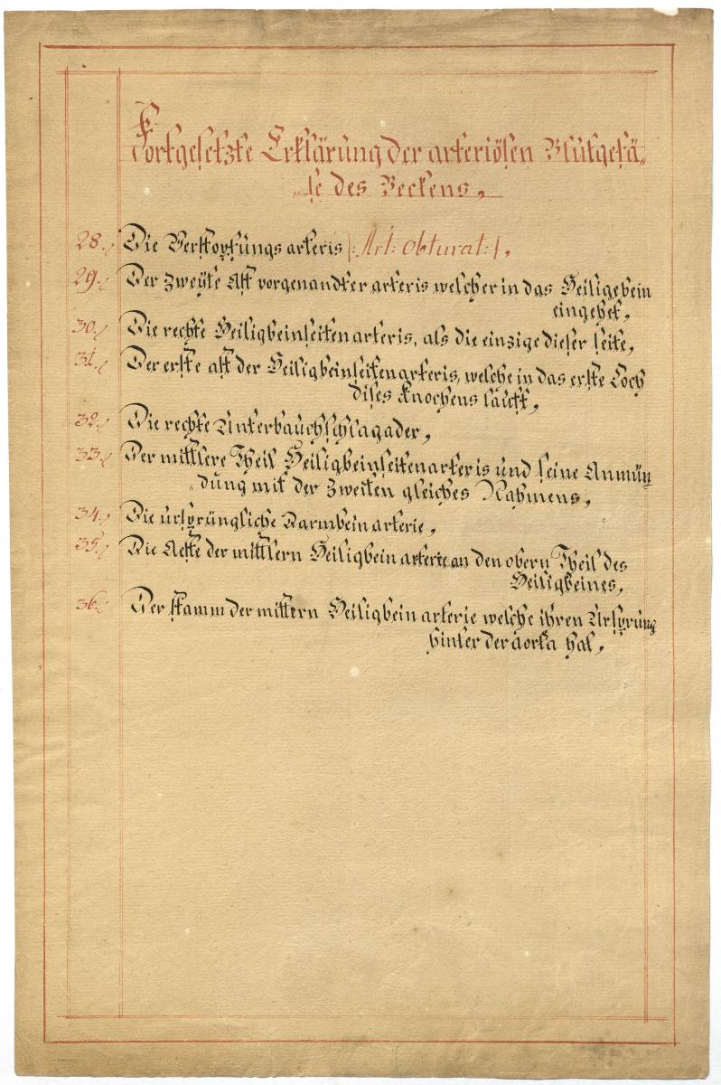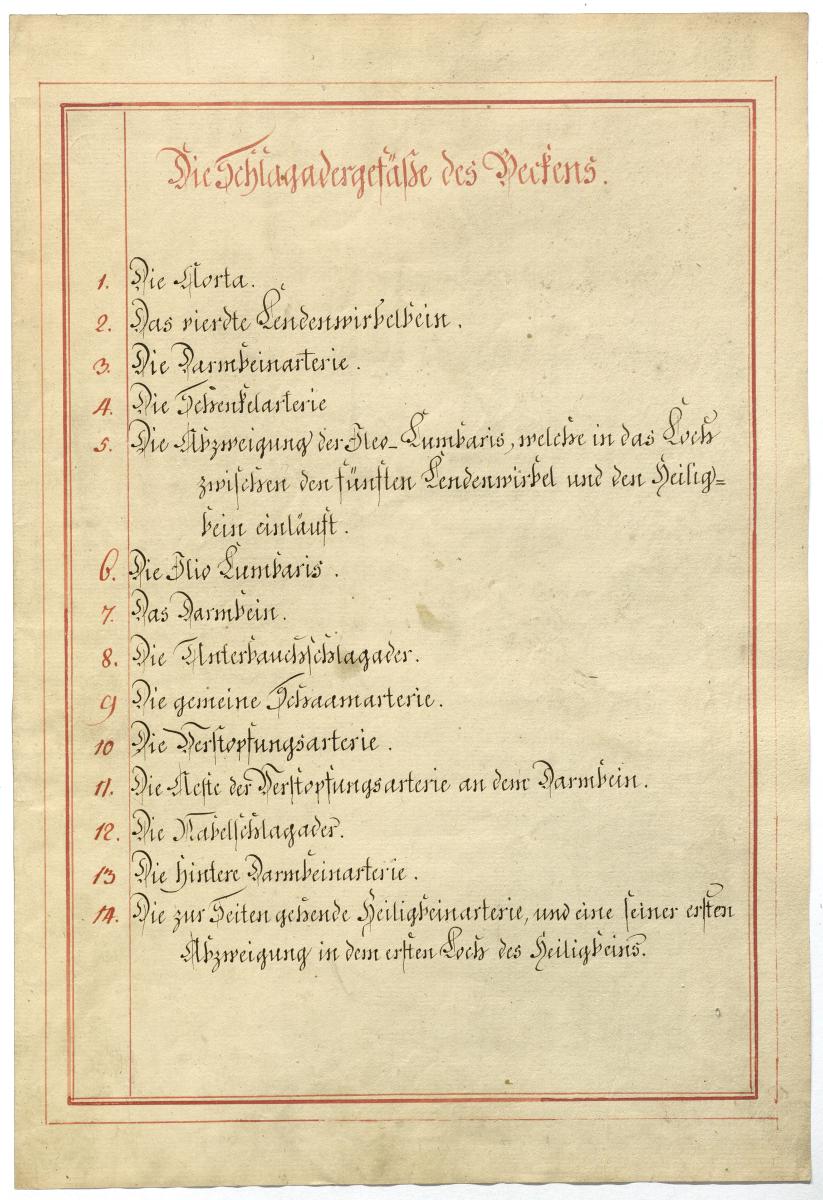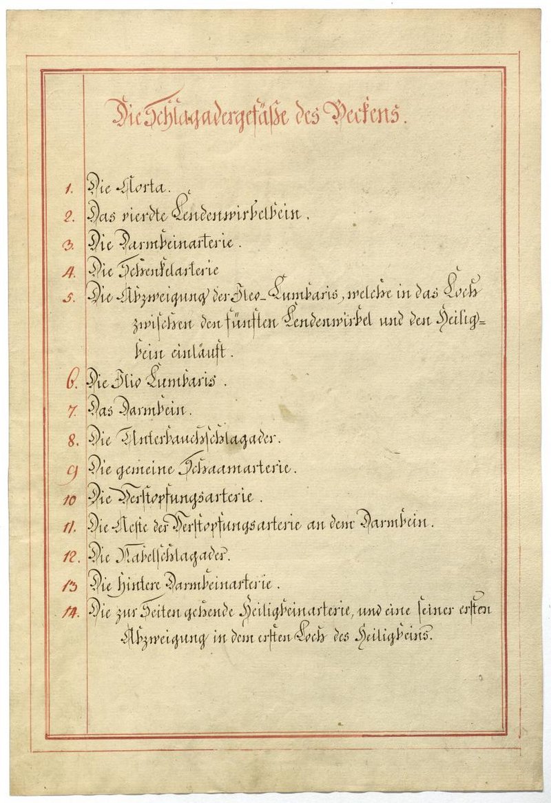 Der Text ist die ergänzende Beschreibung in deutscher Sprache zum anatomischen Wachsmodell der Beckenarterien.