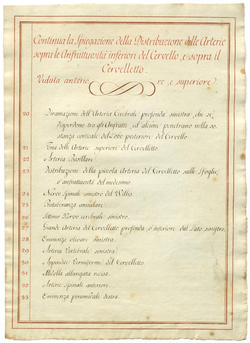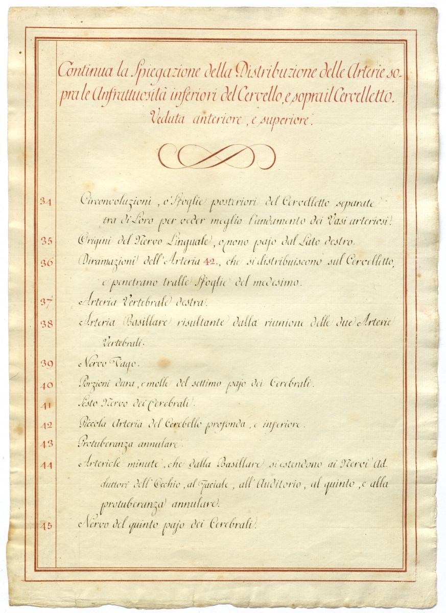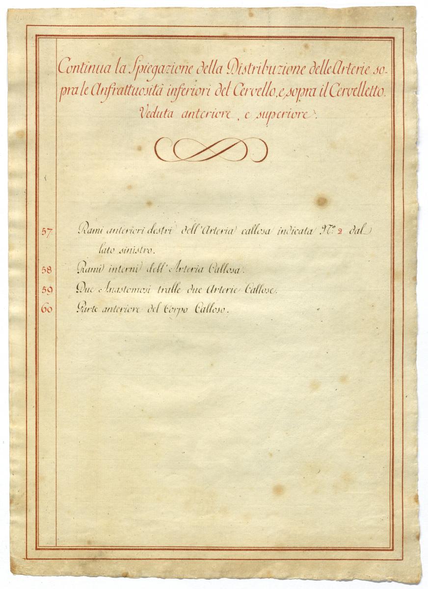 Der Text ist die ergänzende Beschreibung in italienischer Sprache zum anatomischen Wachsmodell der Gehirnarterien.