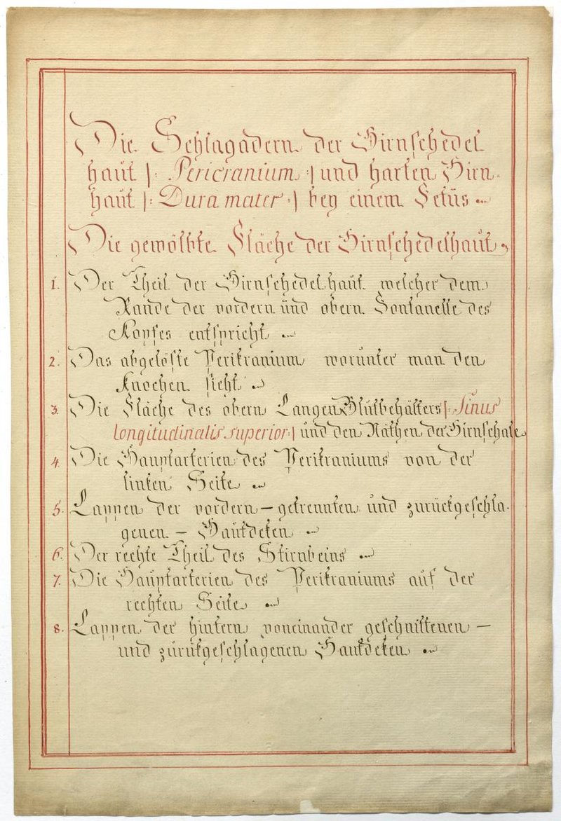 Der Text ist die ergänzende Beschreibung in deutscher Sprache zum anatomischen Wachsmodell der Meningealgefäße.