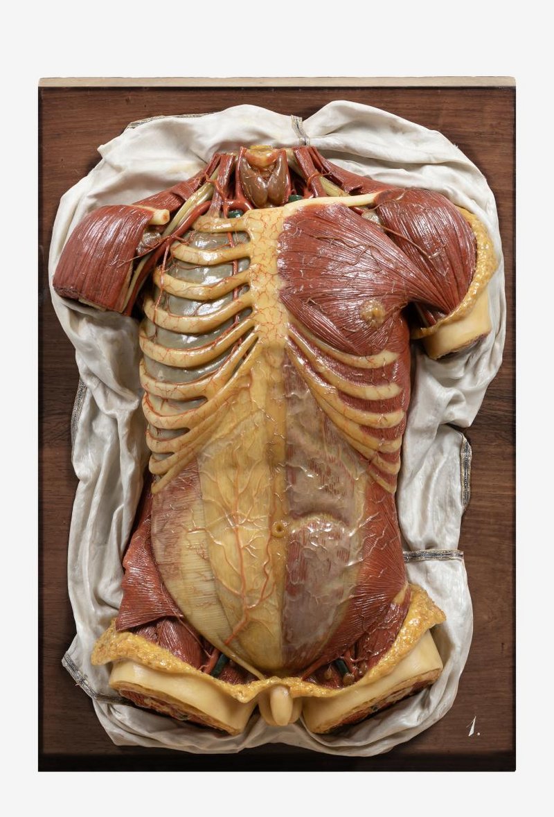 1. Die Schlagadern der vorderen Rumpfwand: auf der linken Seite die oberflächlichen Äste, auf der rechten Seite die innere Brustwandschlagader (A. thoracica interna) und die untere Oberbauchschlagader (A. epigastrica inferior).