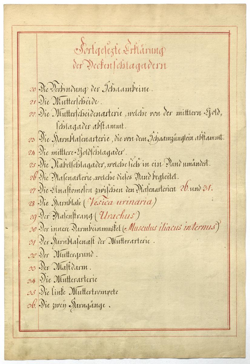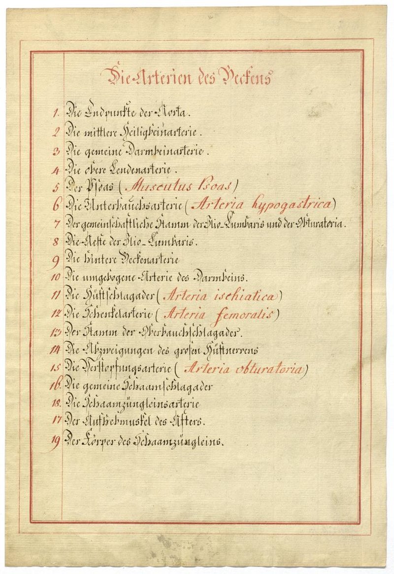 Der Text ist die ergänzende Beschreibung in deutscher Sprache zum anatomischen Wachsmodell der Beckenarterien.