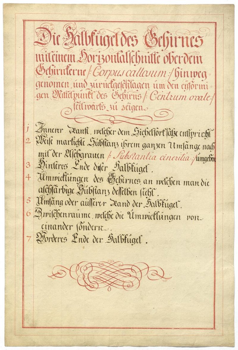 Der Text ist die ergänzende Beschreibung in deutscher Sprache zum anatomischen Wachsmodell des Gehirns.