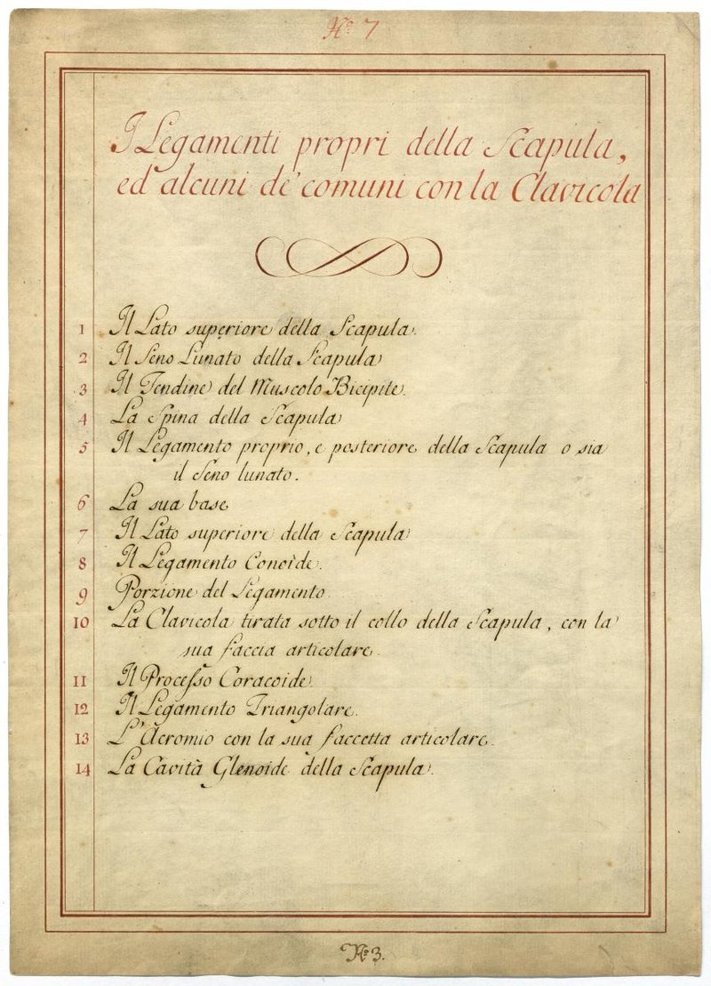 Der Text ist die ergänzende Beschreibung in italienischer Sprache zum anatomischen Wachsmodell des Schulterbereichs.