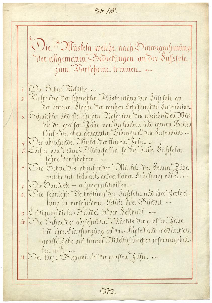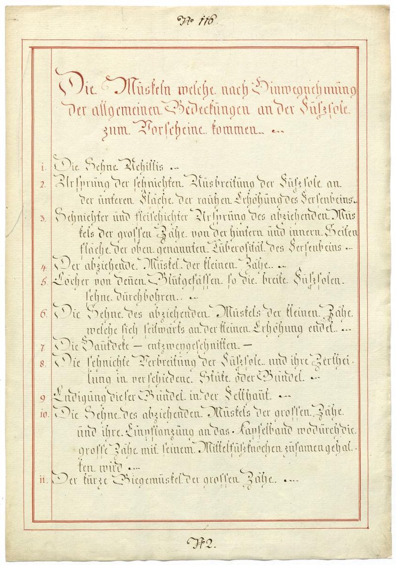 Der Text ist die ergänzende Beschreibung in deutscher Sprache zum anatomischen Wachsmodell der Muskeln der Fußsohle.