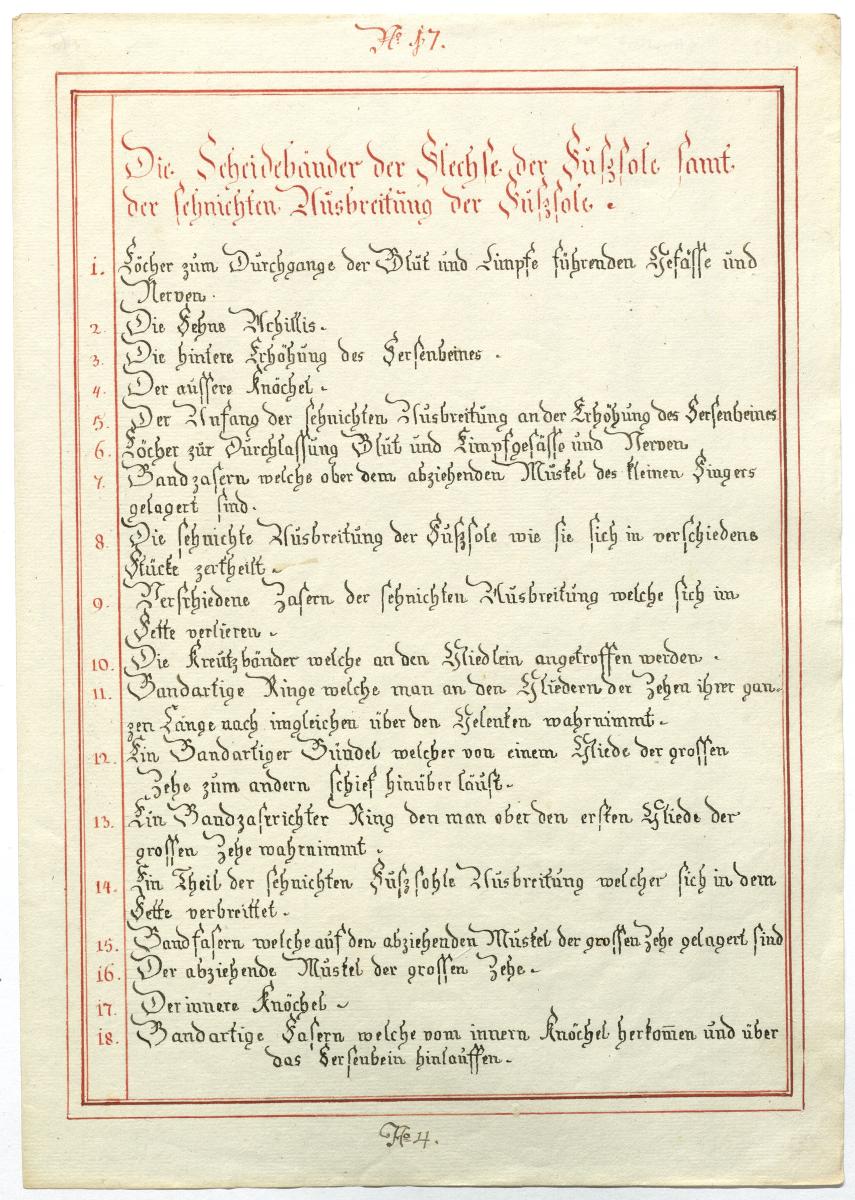Der Text ist die ergänzende Beschreibung in deutscher Sprache zum anatomischen Wachsmodell des Fußes.