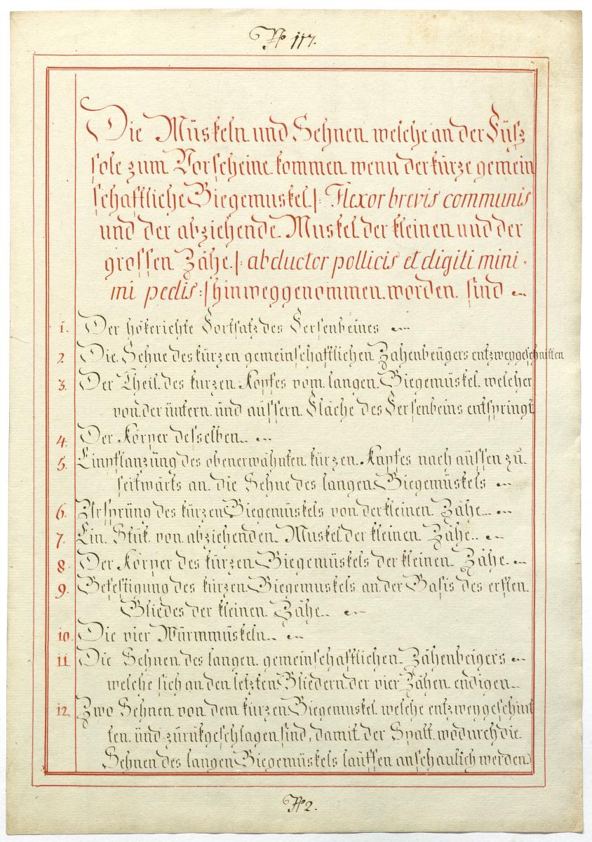 Der Text ist die ergänzende Beschreibung in deutscher Sprache zum anatomischen Wachsmodell der Muskeln der Fußsohle.