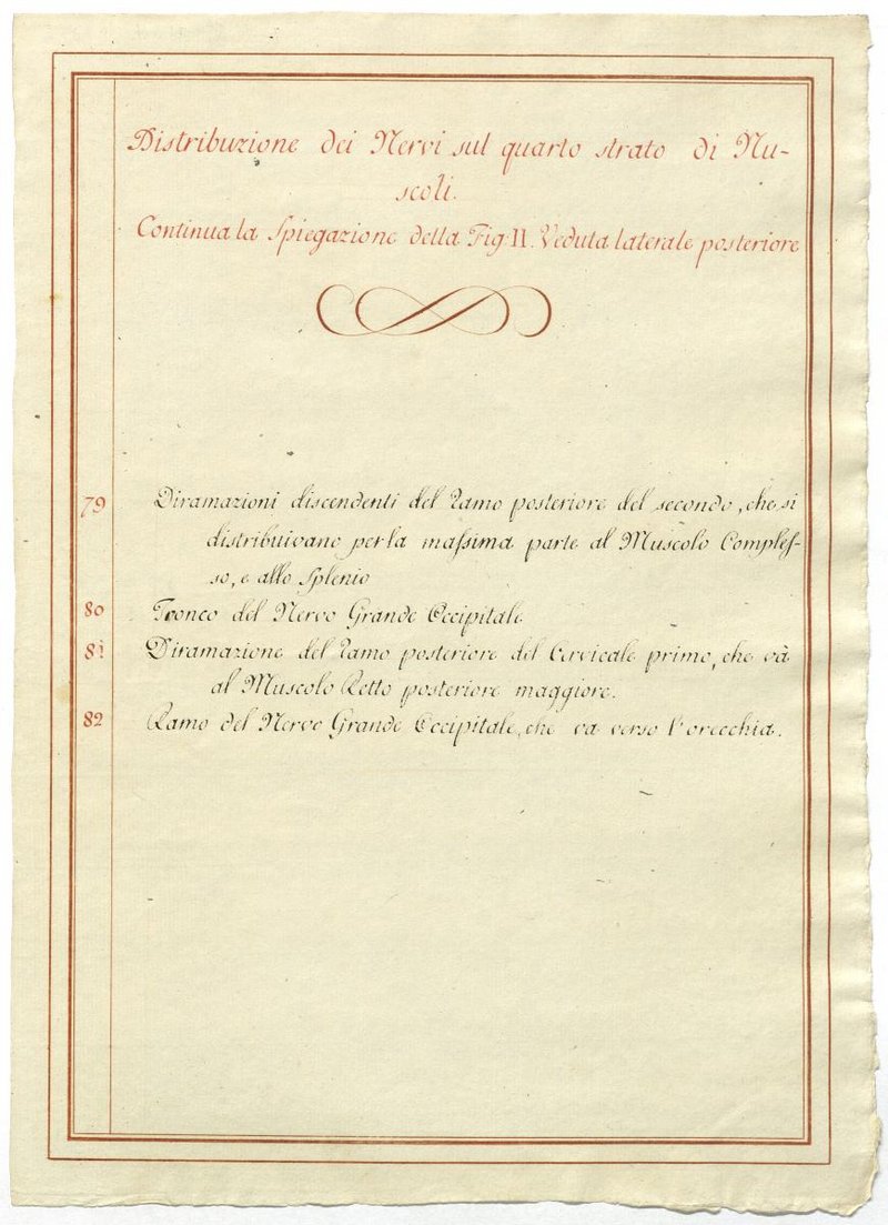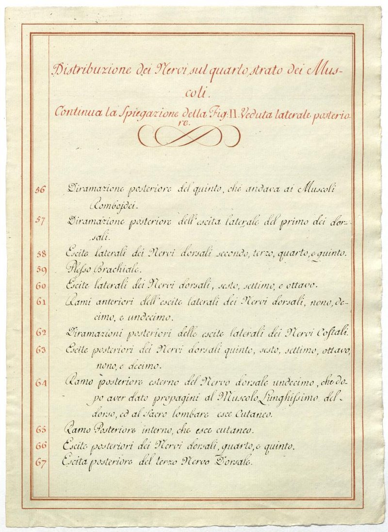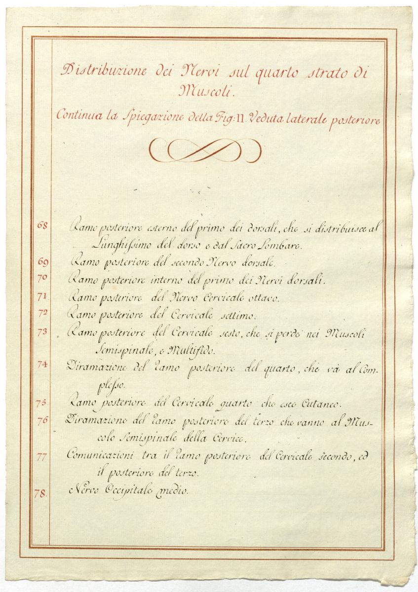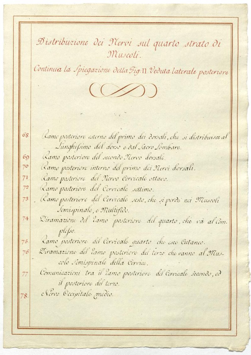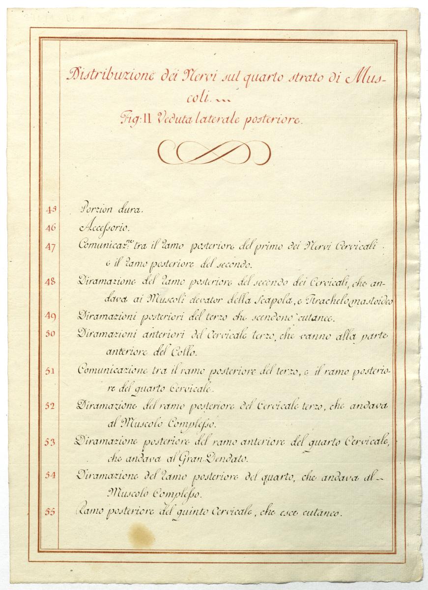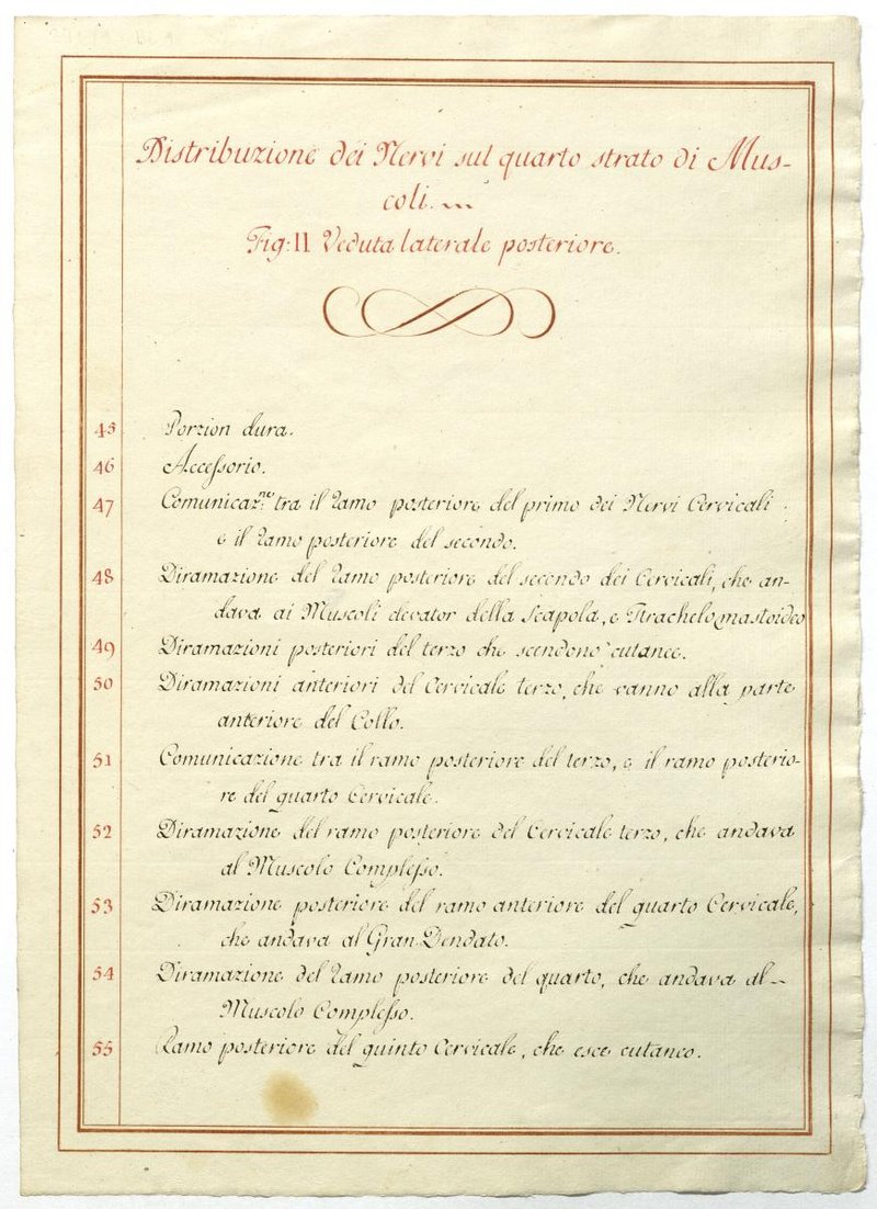 Der Text ist die ergänzende Beschreibung in italienischer Sprache zum anatomischen Wachsmodell des Plexus cervicalis und Plexus brachialis.