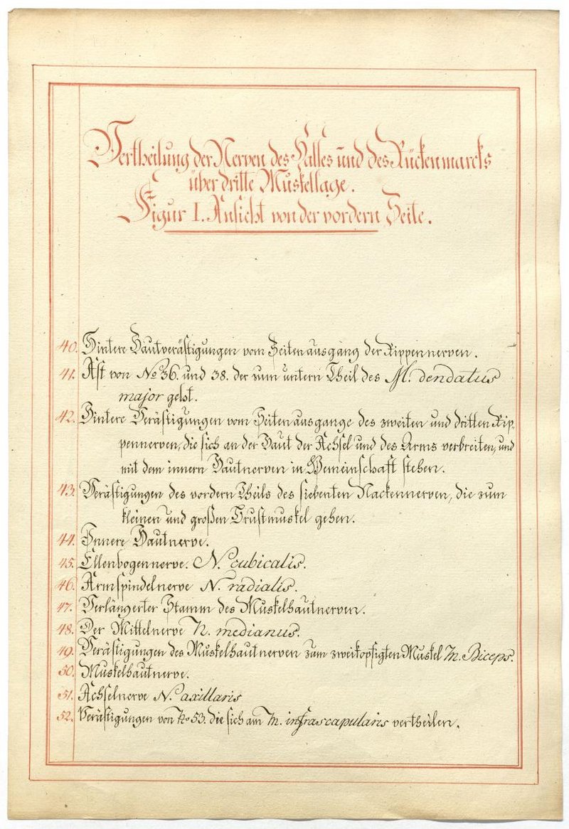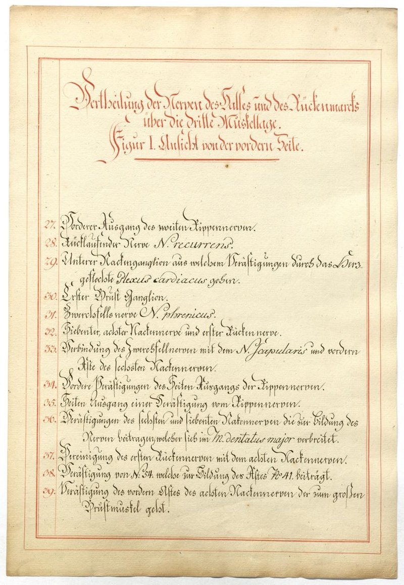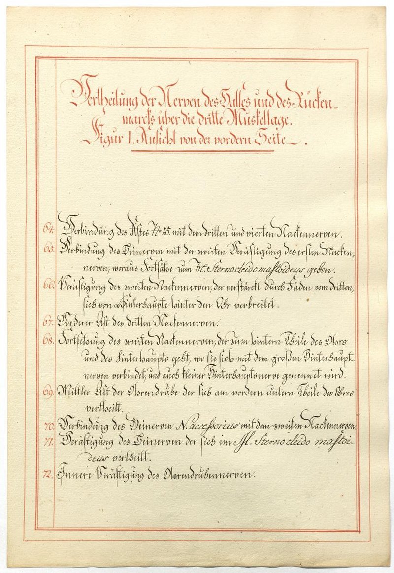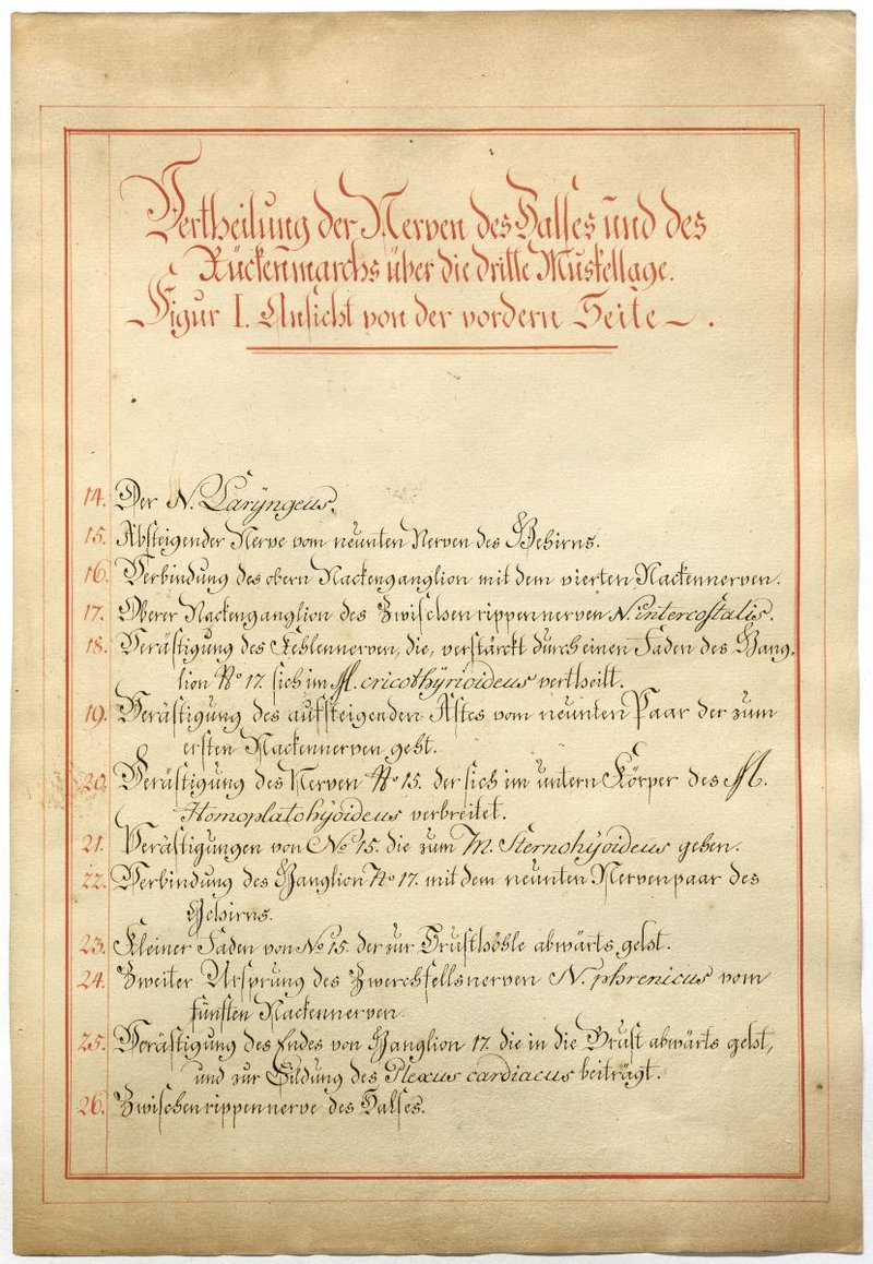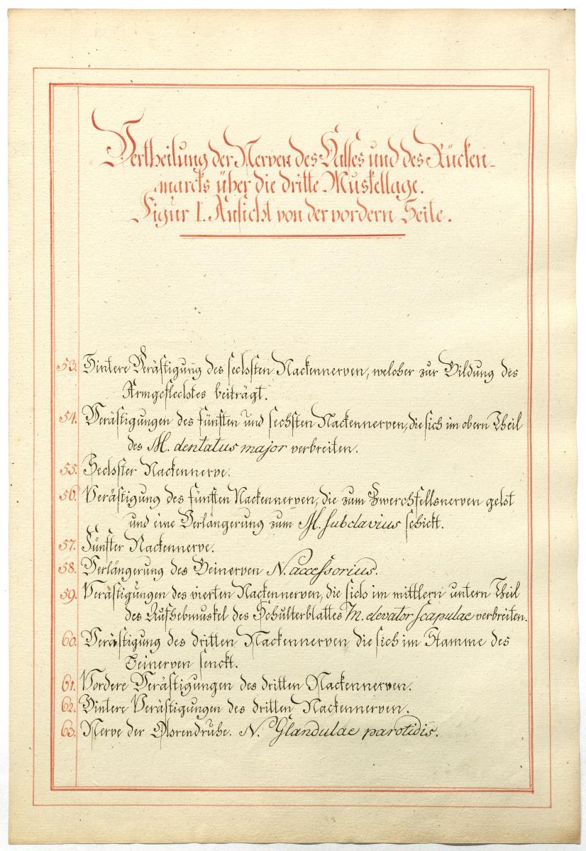 Der Text ist die ergänzende Beschreibung in deutscher Sprache zum anatomischen Wachsmodell des Plexus cervicalis und Plexus brachialis. Blatt 1 fehlt.