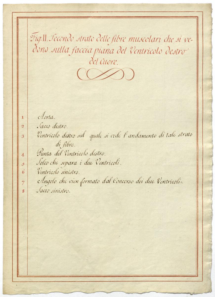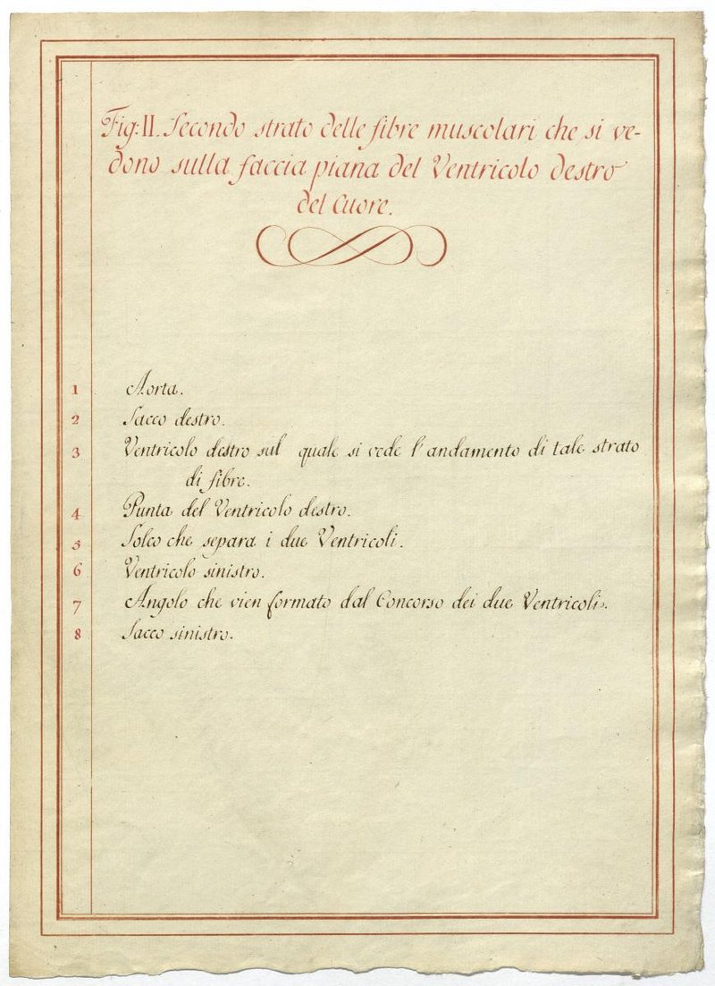Der Text ist die ergänzende Beschreibung in italienischer Sprache zum anatomischen Wachsmodell des Herzens.